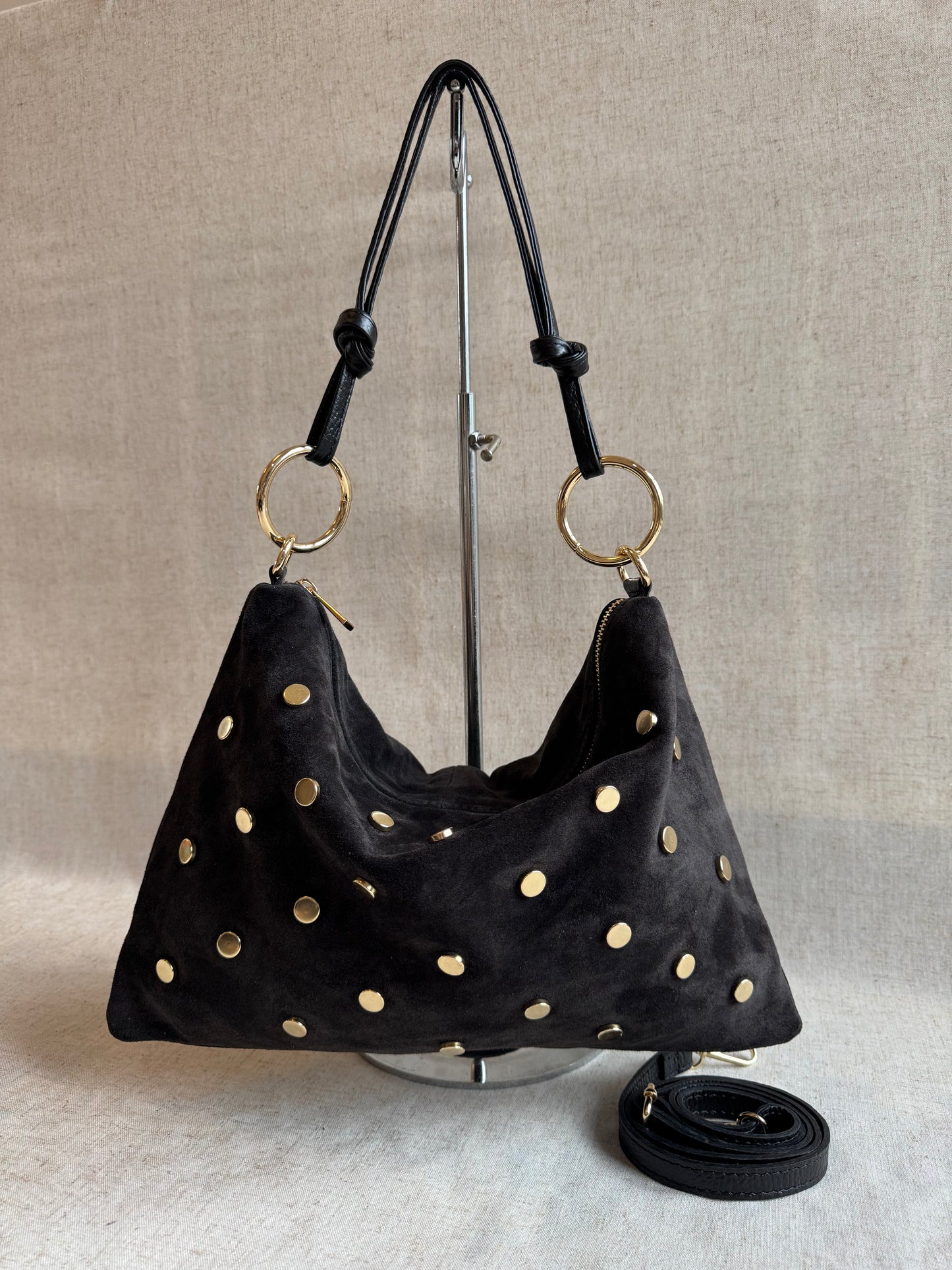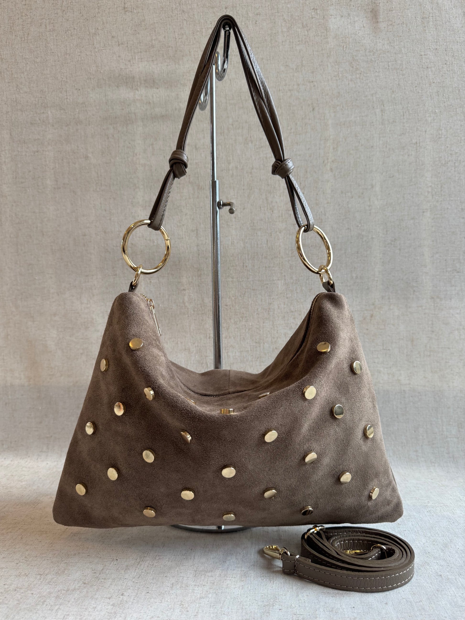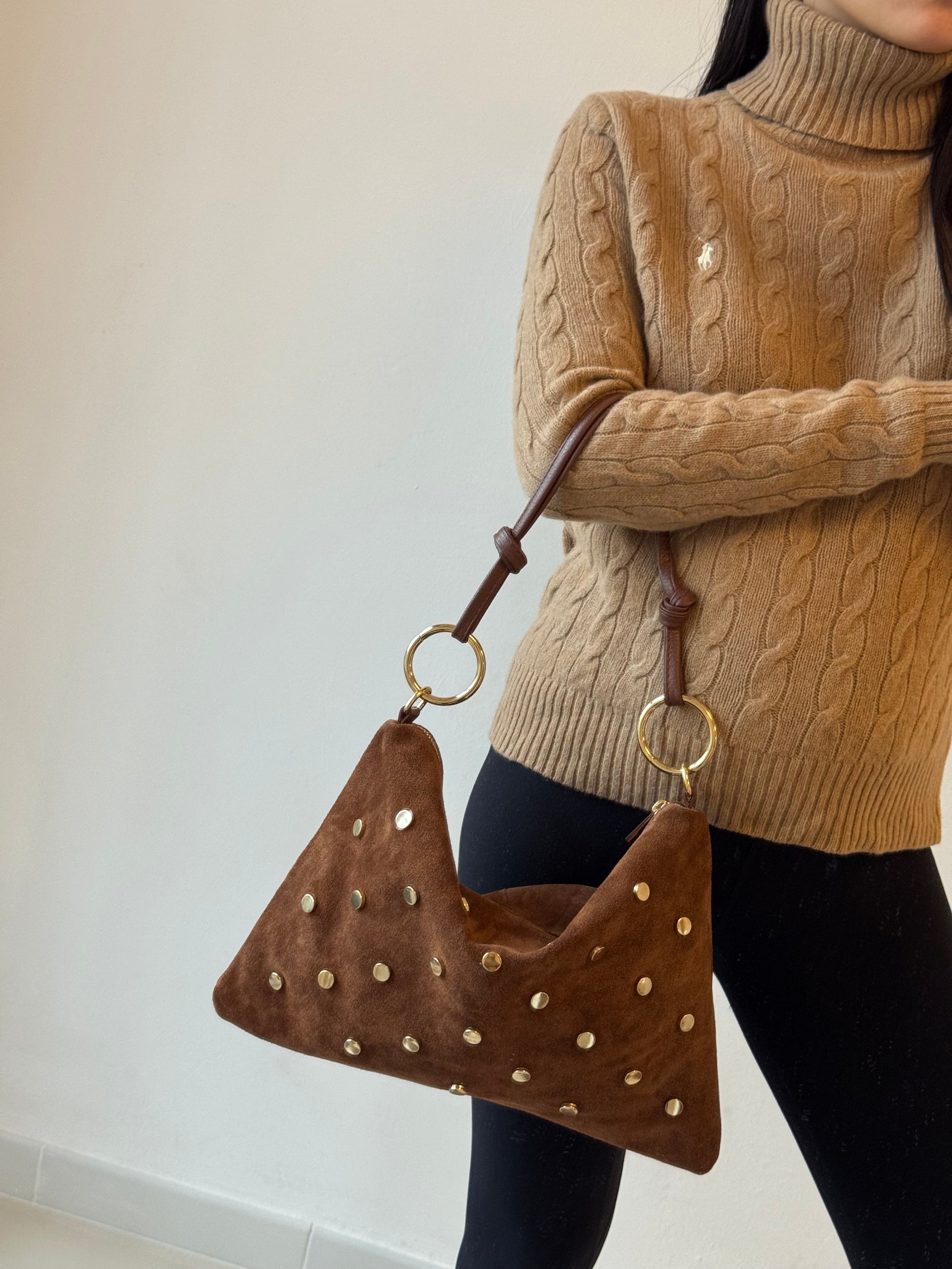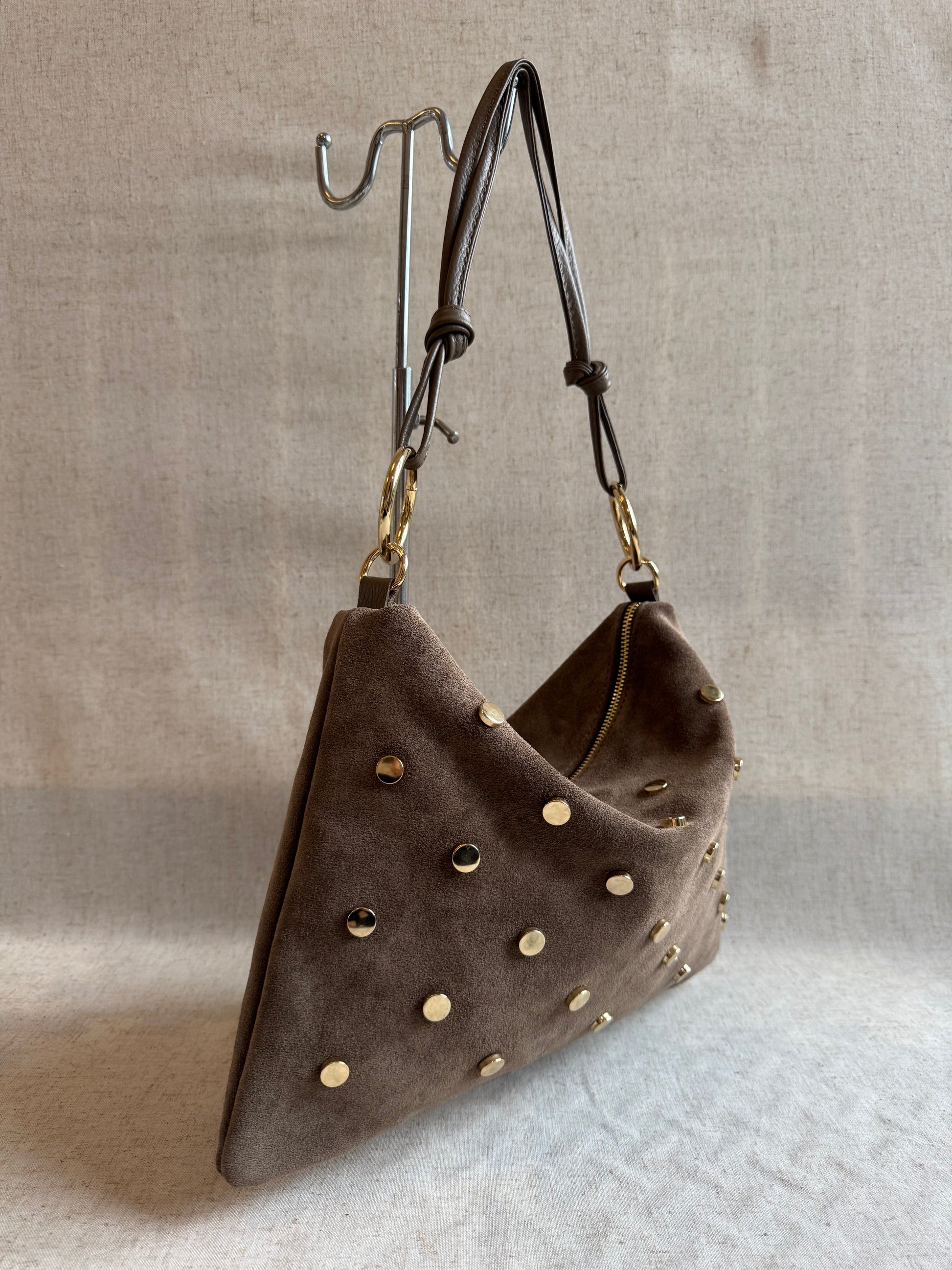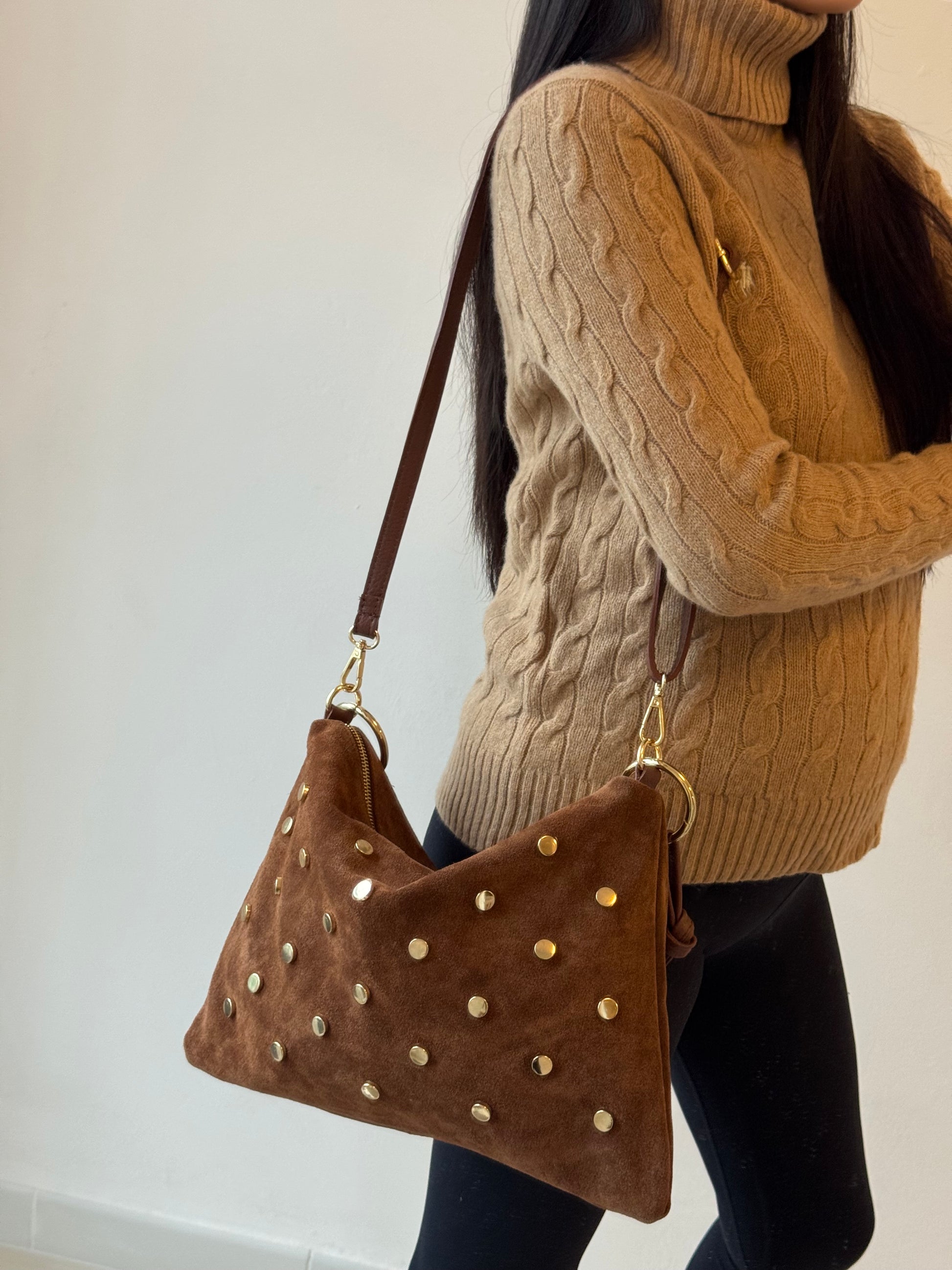 Borsa a spalla Agata - borchie, misura grande, con tracolla lunga