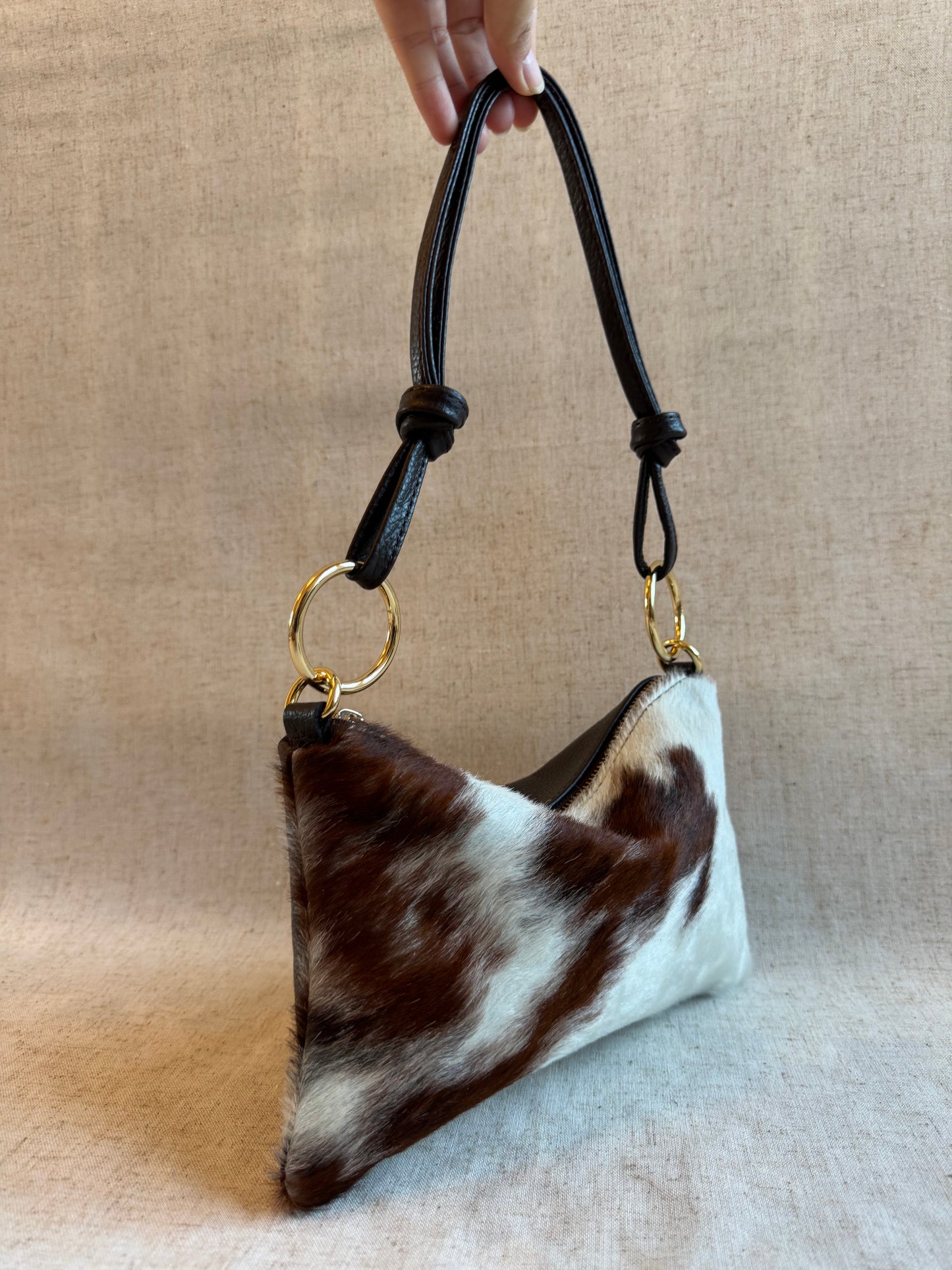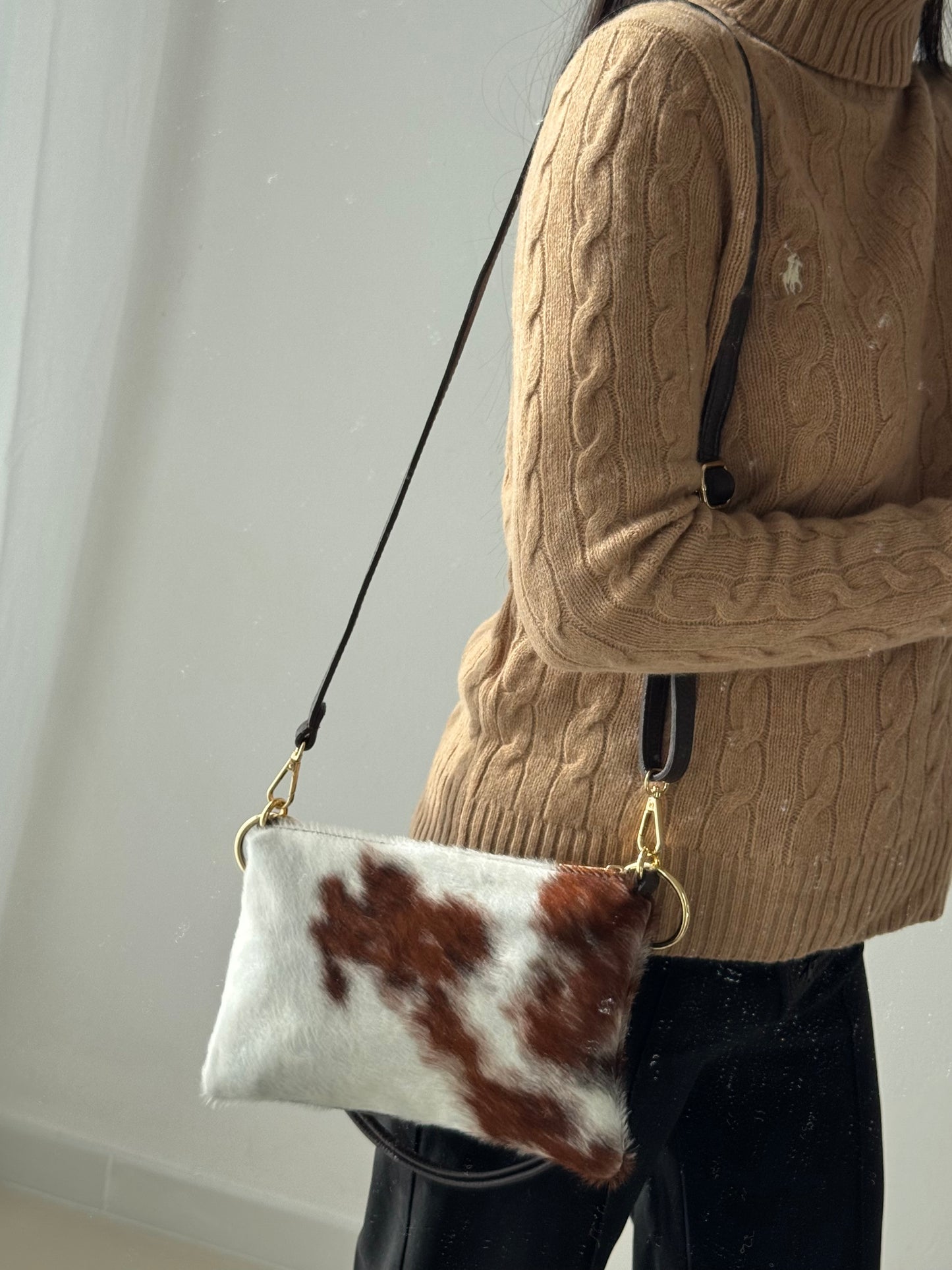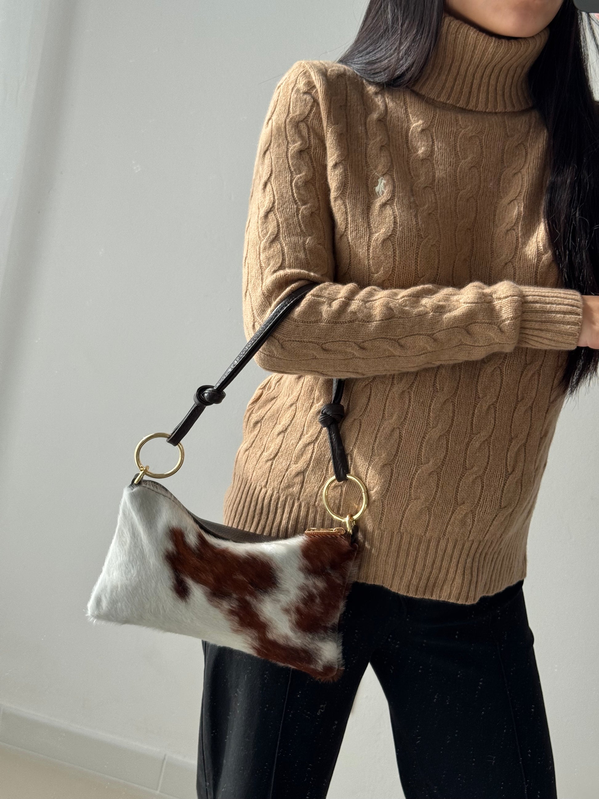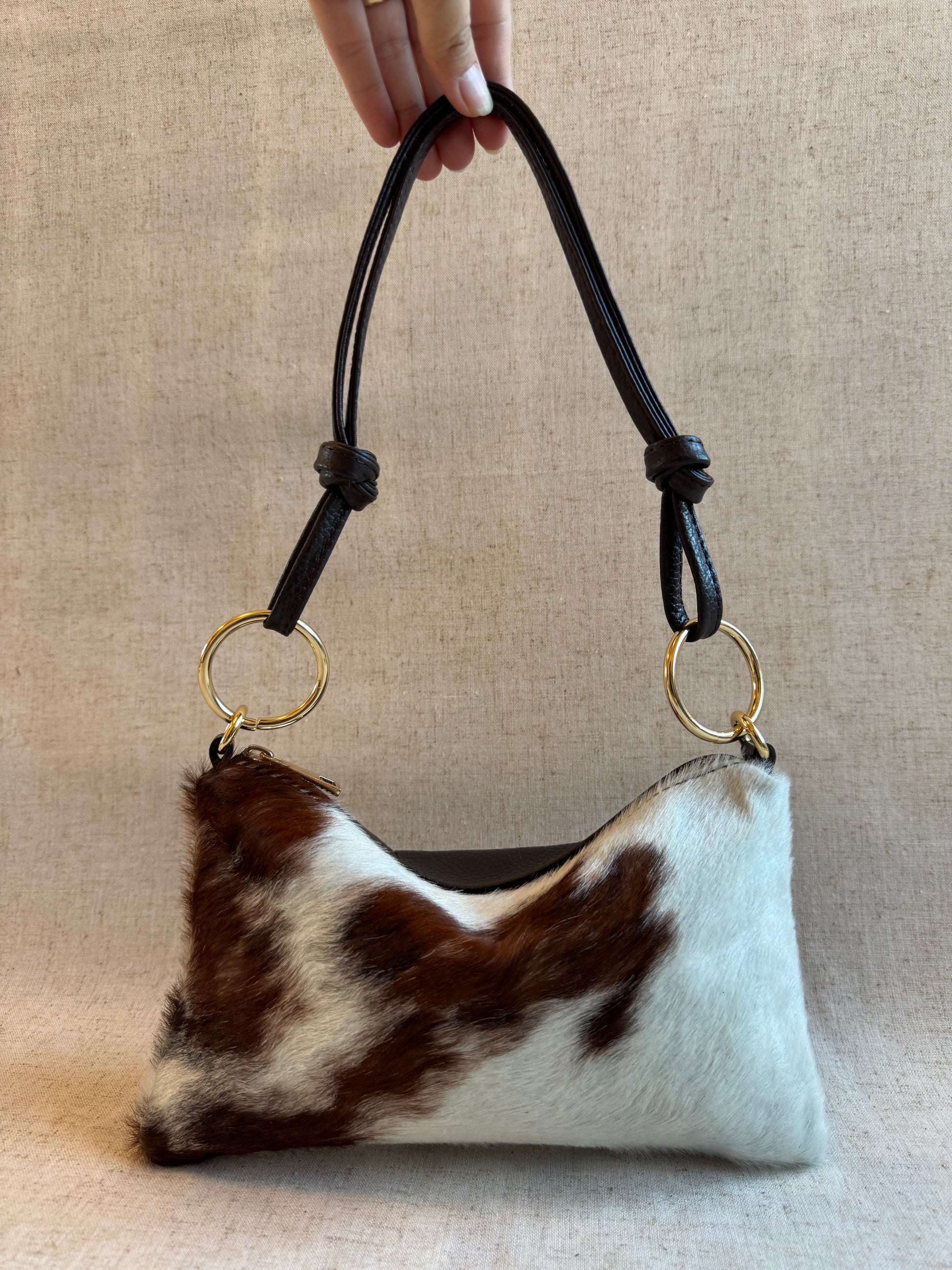 NB: Le parti in cavallino di tutte le borse sono DIFFERENTI tra di loro, essendo ogni borsa realizzata in vero pelo di mucca