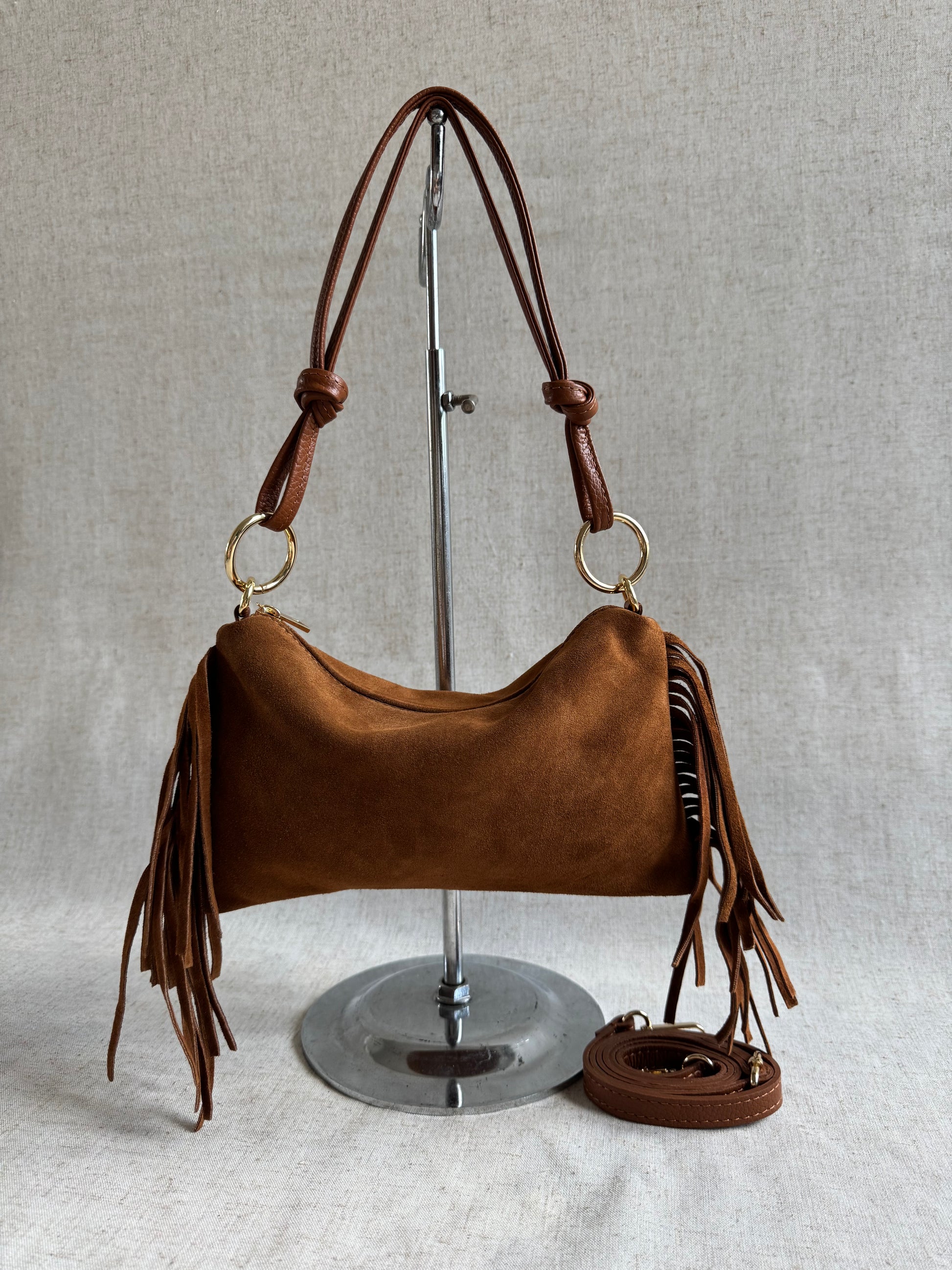 Borsa a spalla Agata - misura piccola frange, con tracolla lunga