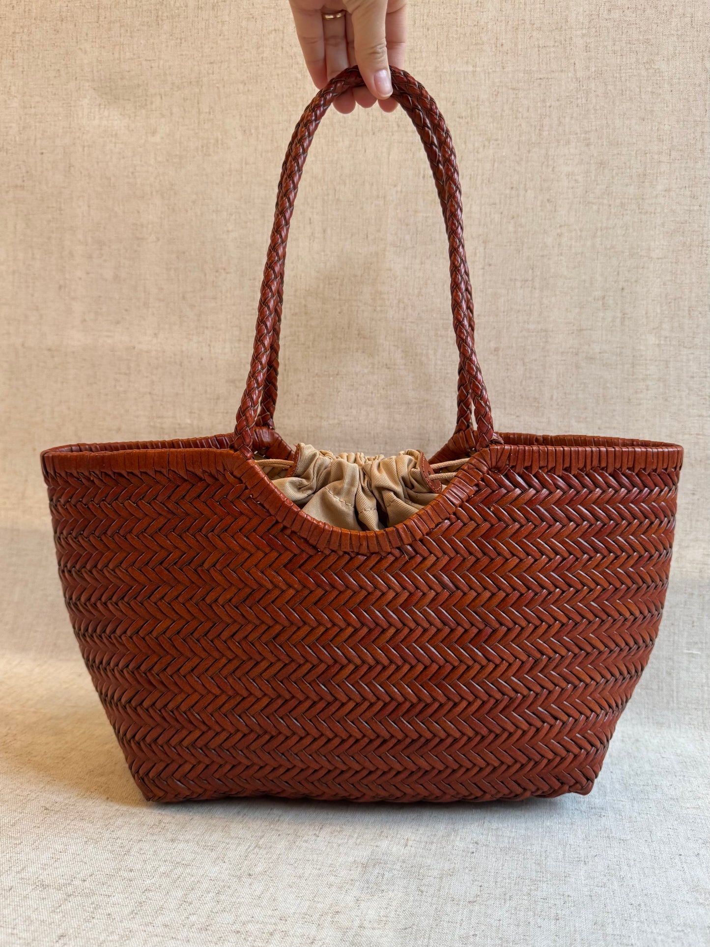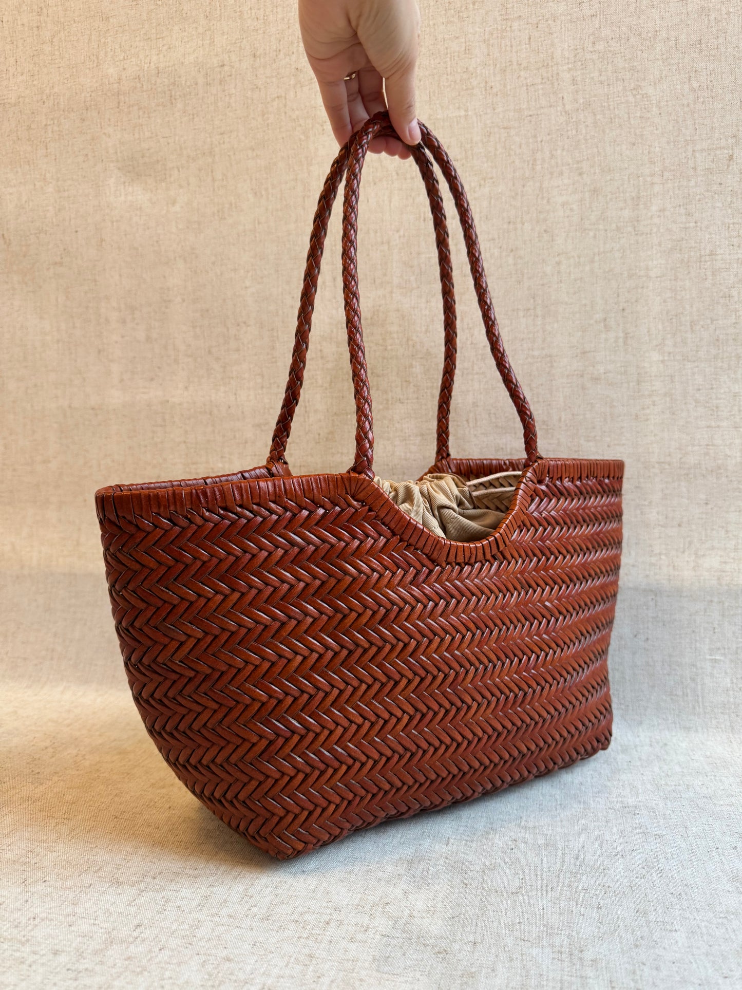 Borsa a spalla, realizzata in vera pelle di bufalo tamponato intrecciato a mano.