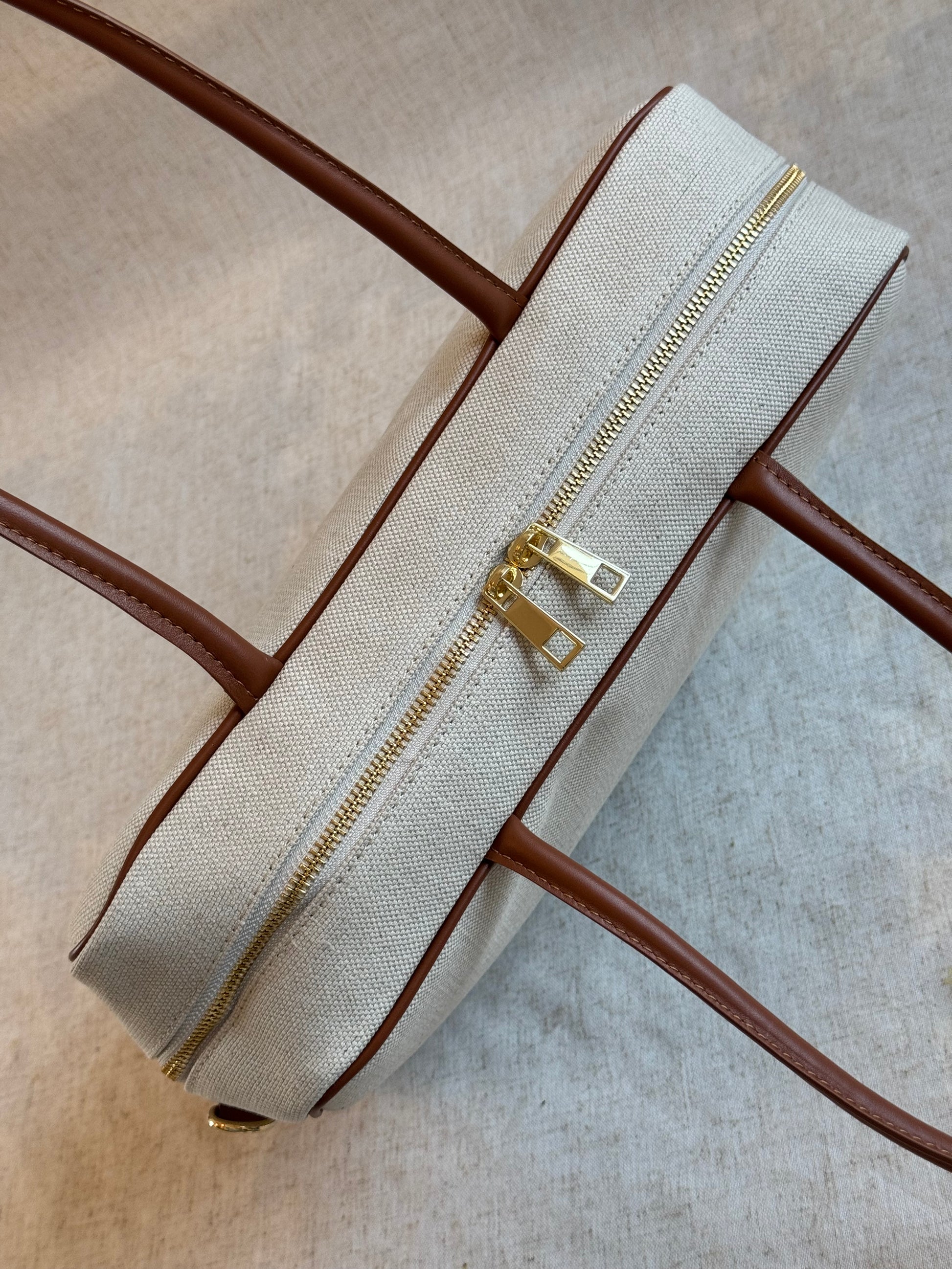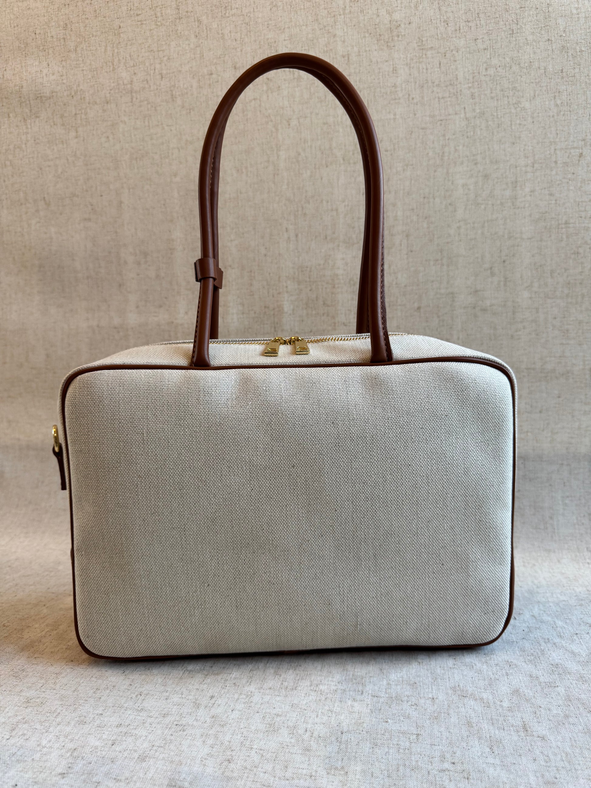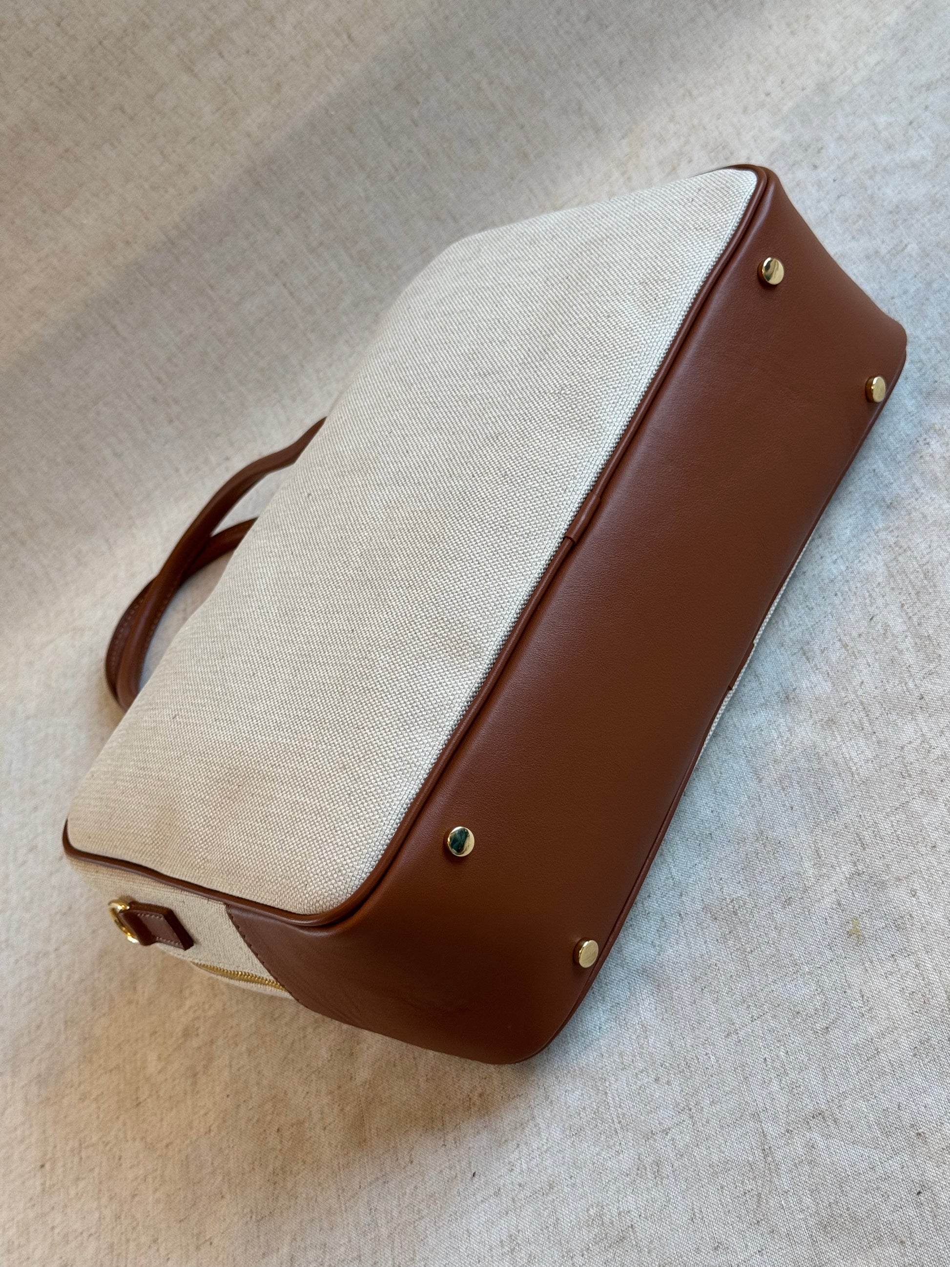 Realizzata in vera pelle e tessuto canvas, made in Italy.