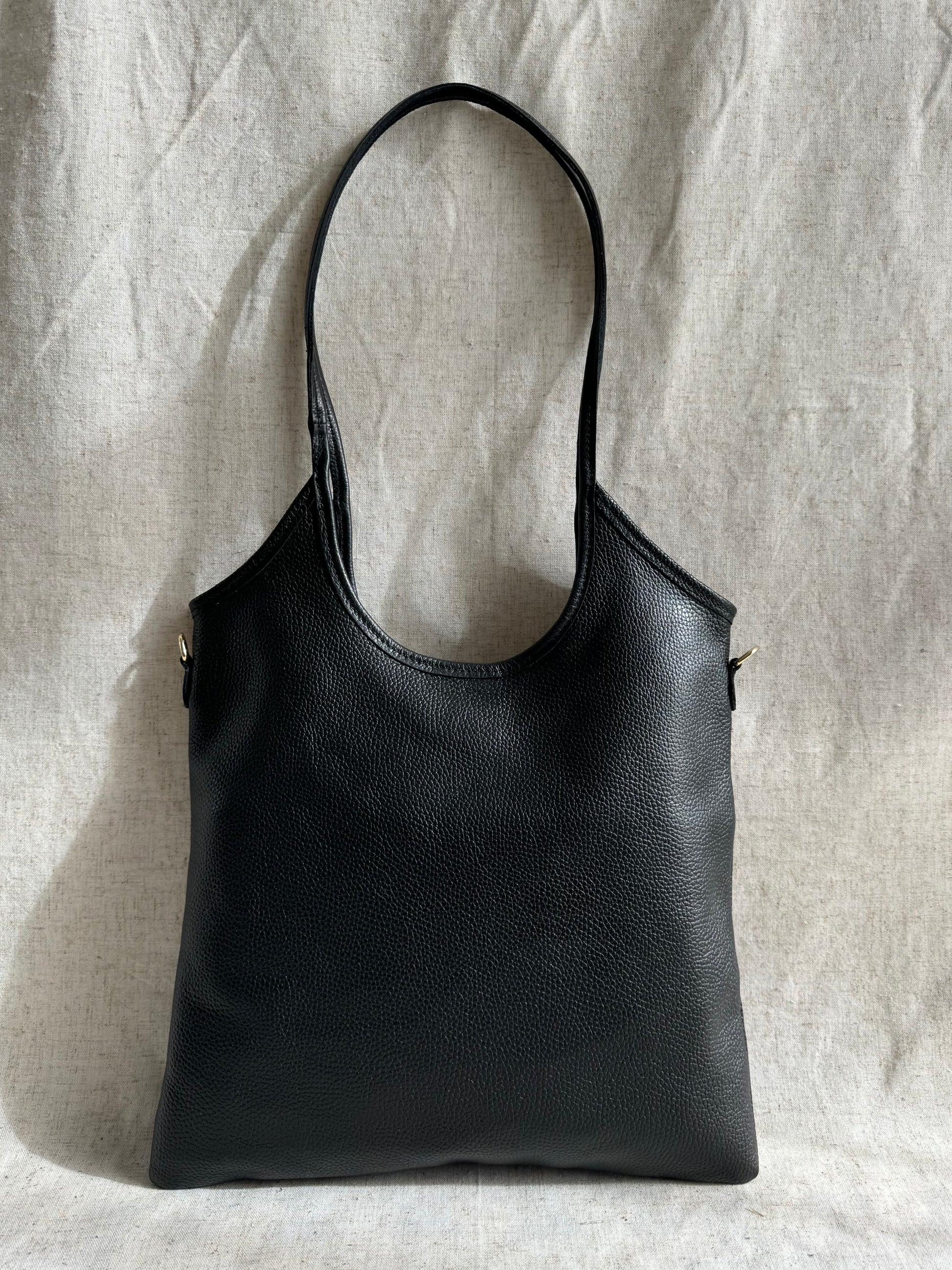 Maxi borsa a spalla con tracolla in pelle regolabile compresa. Realizzata in vera pelle, made in Italy