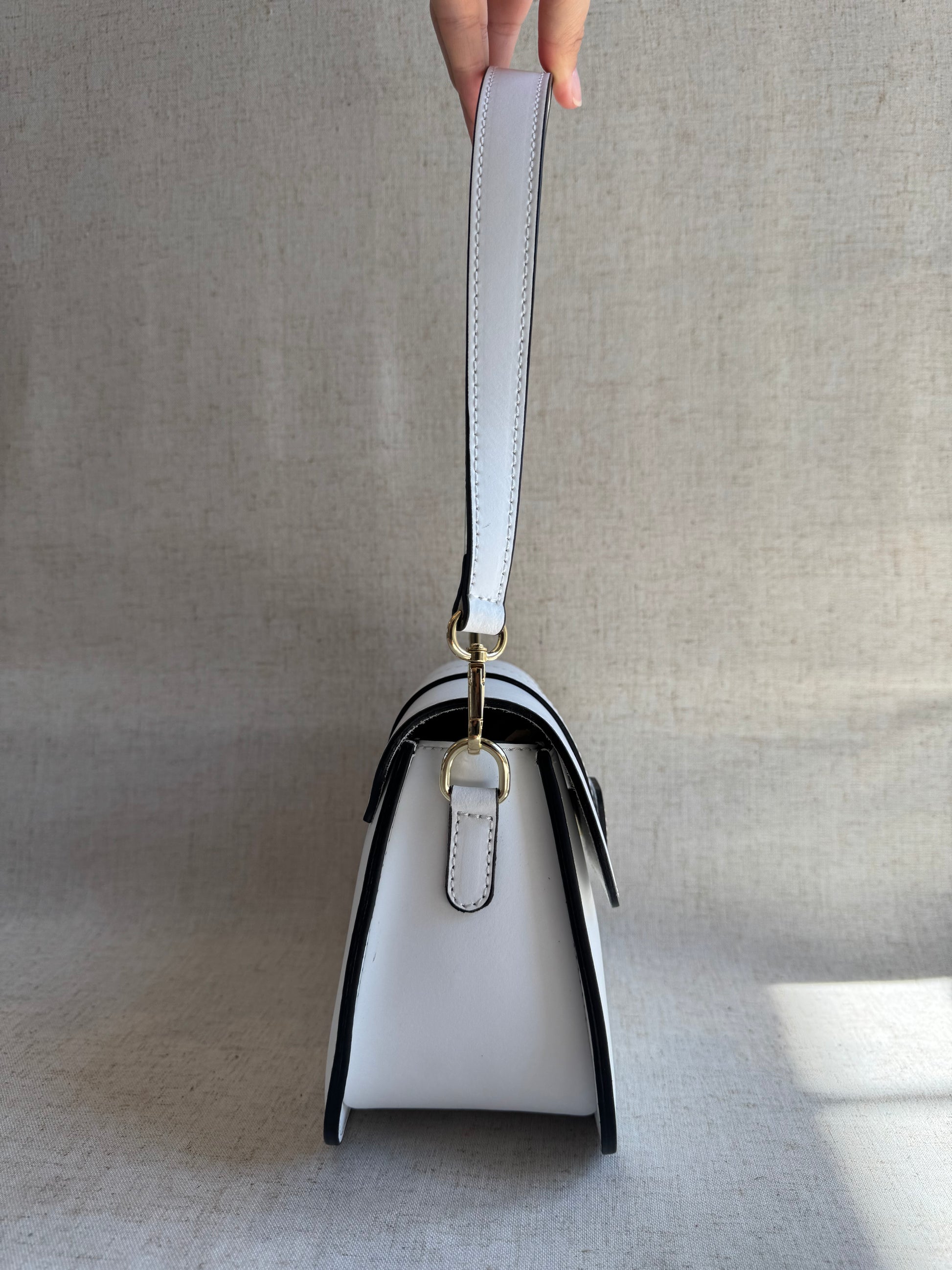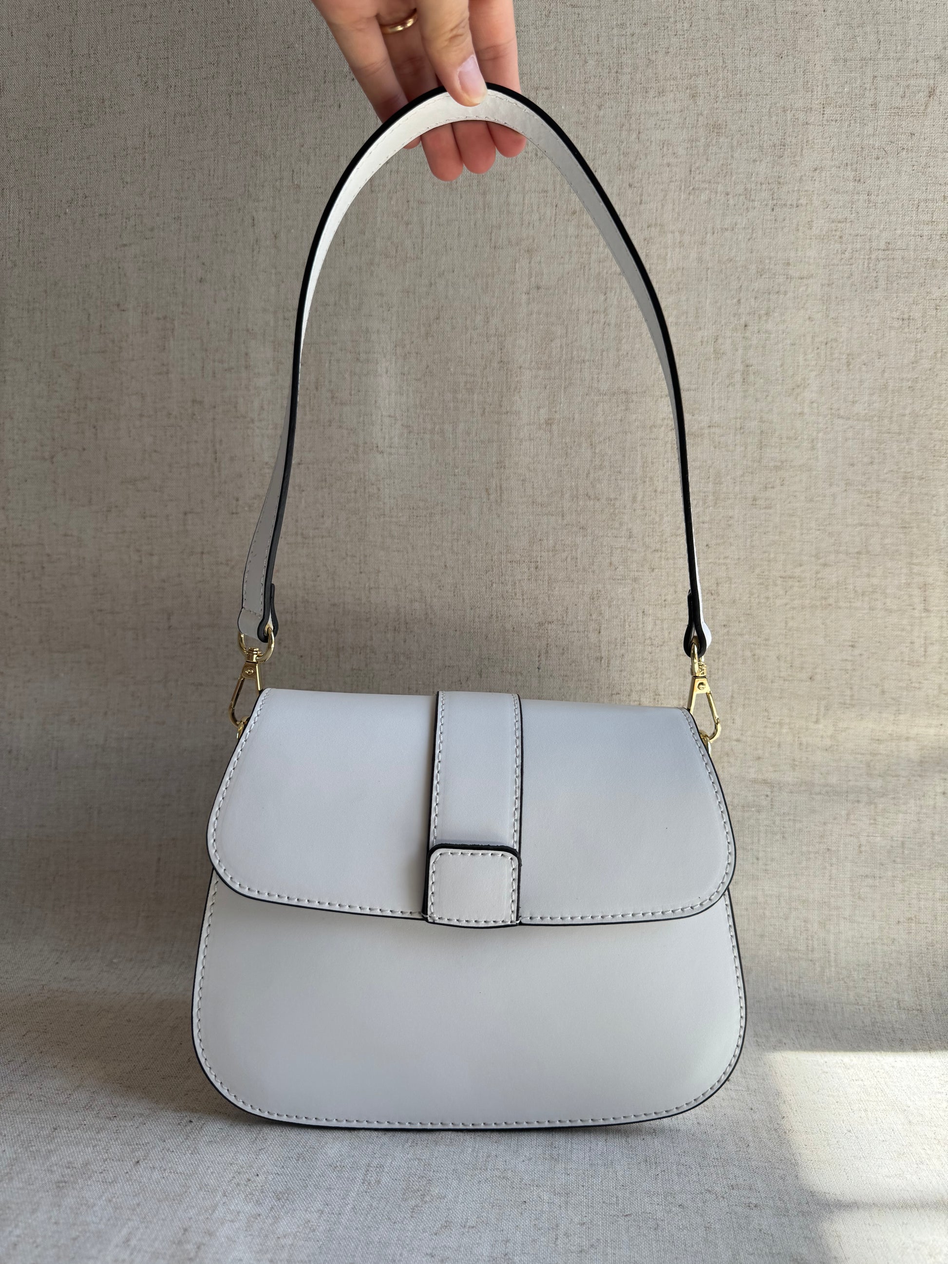 Borsa a spalla con tracolla lunga regolabile compresa.