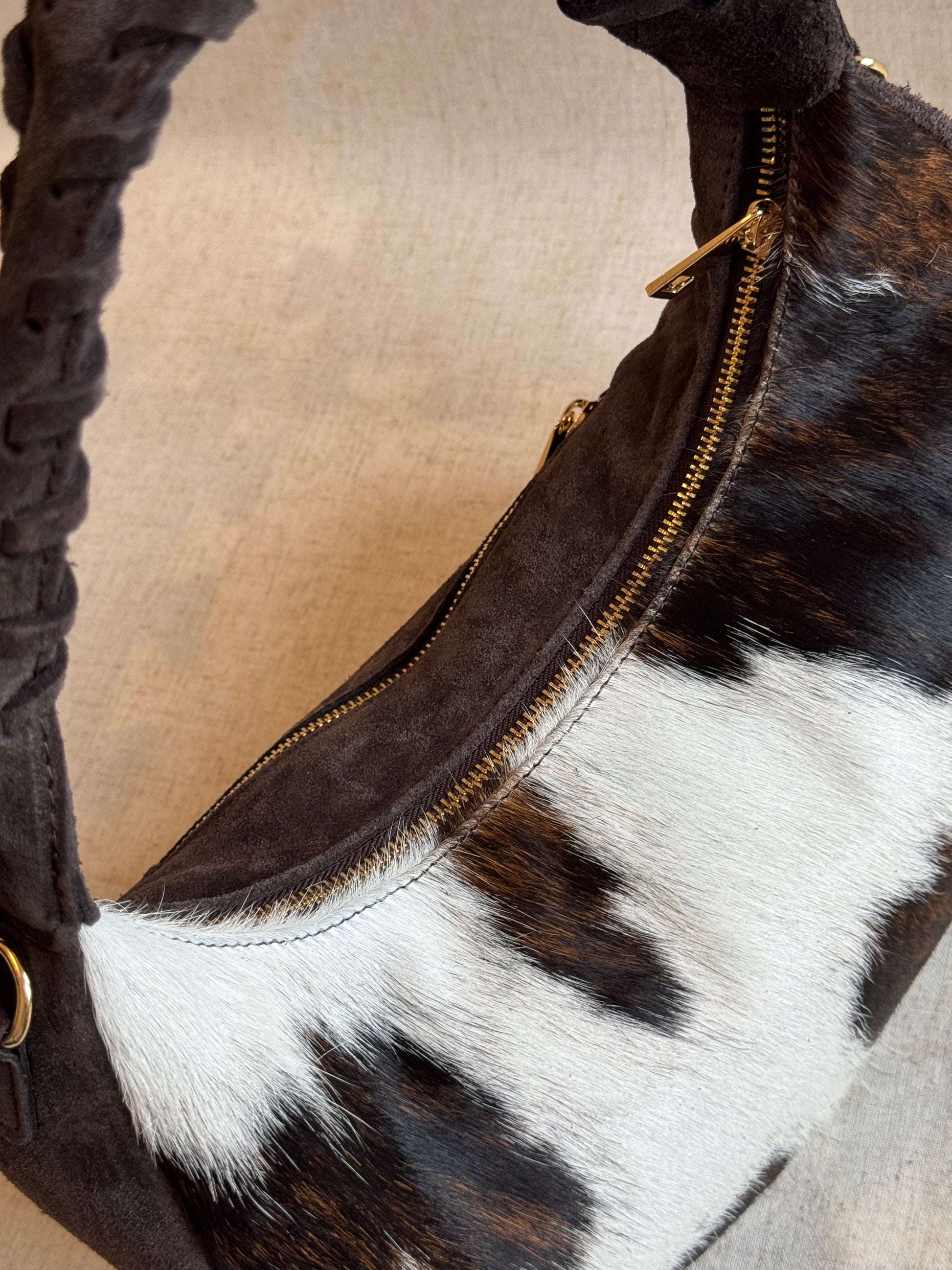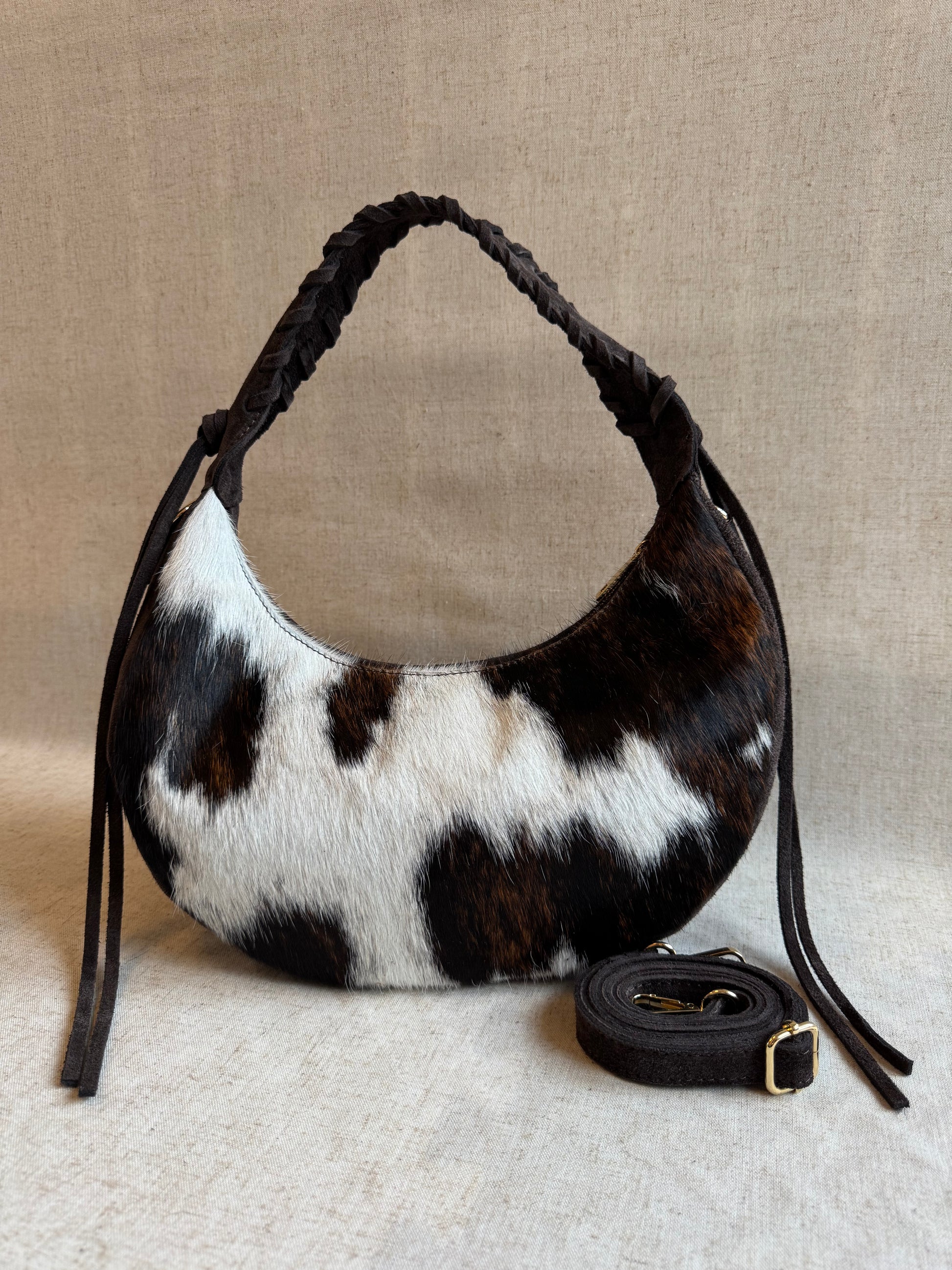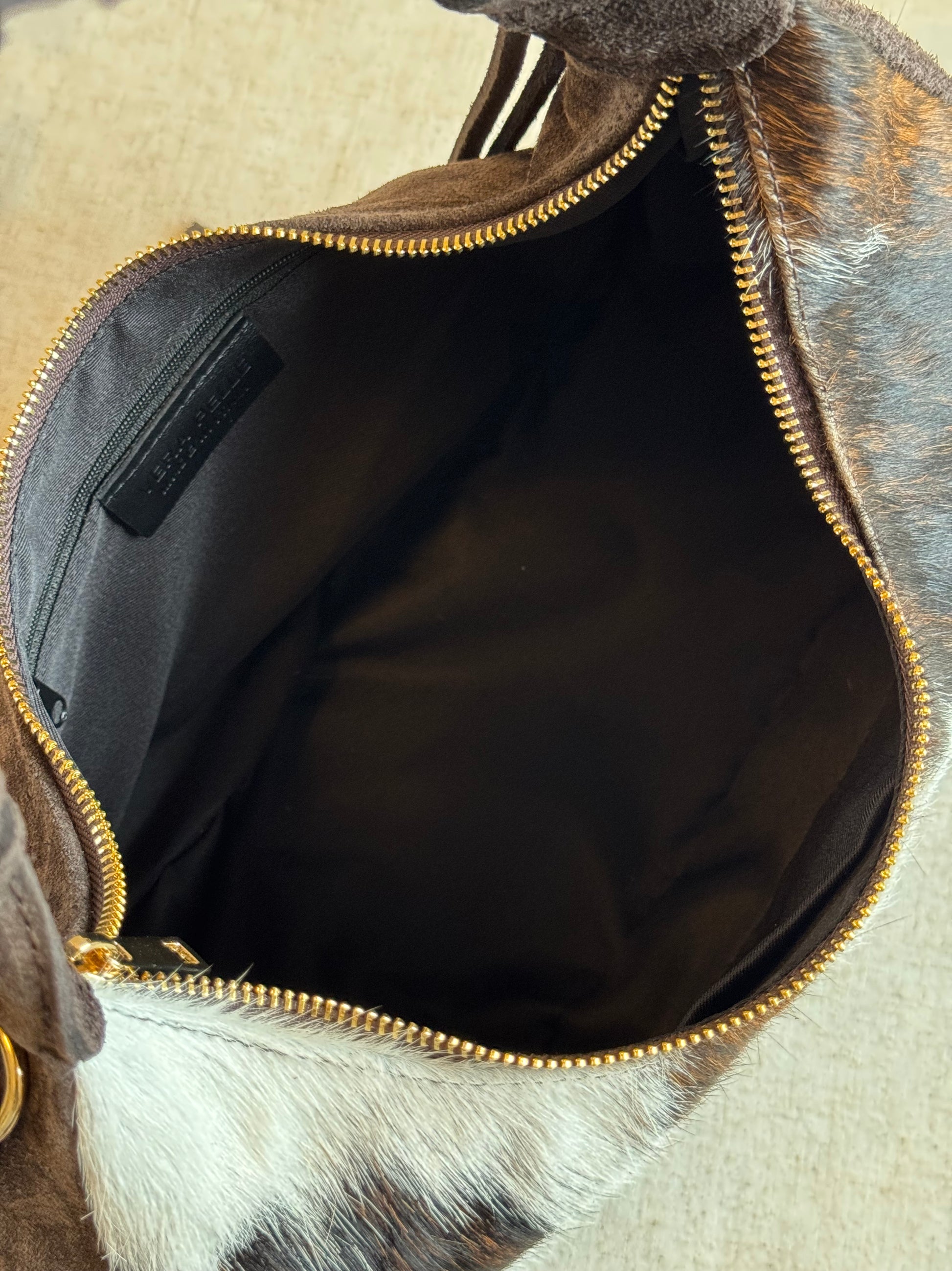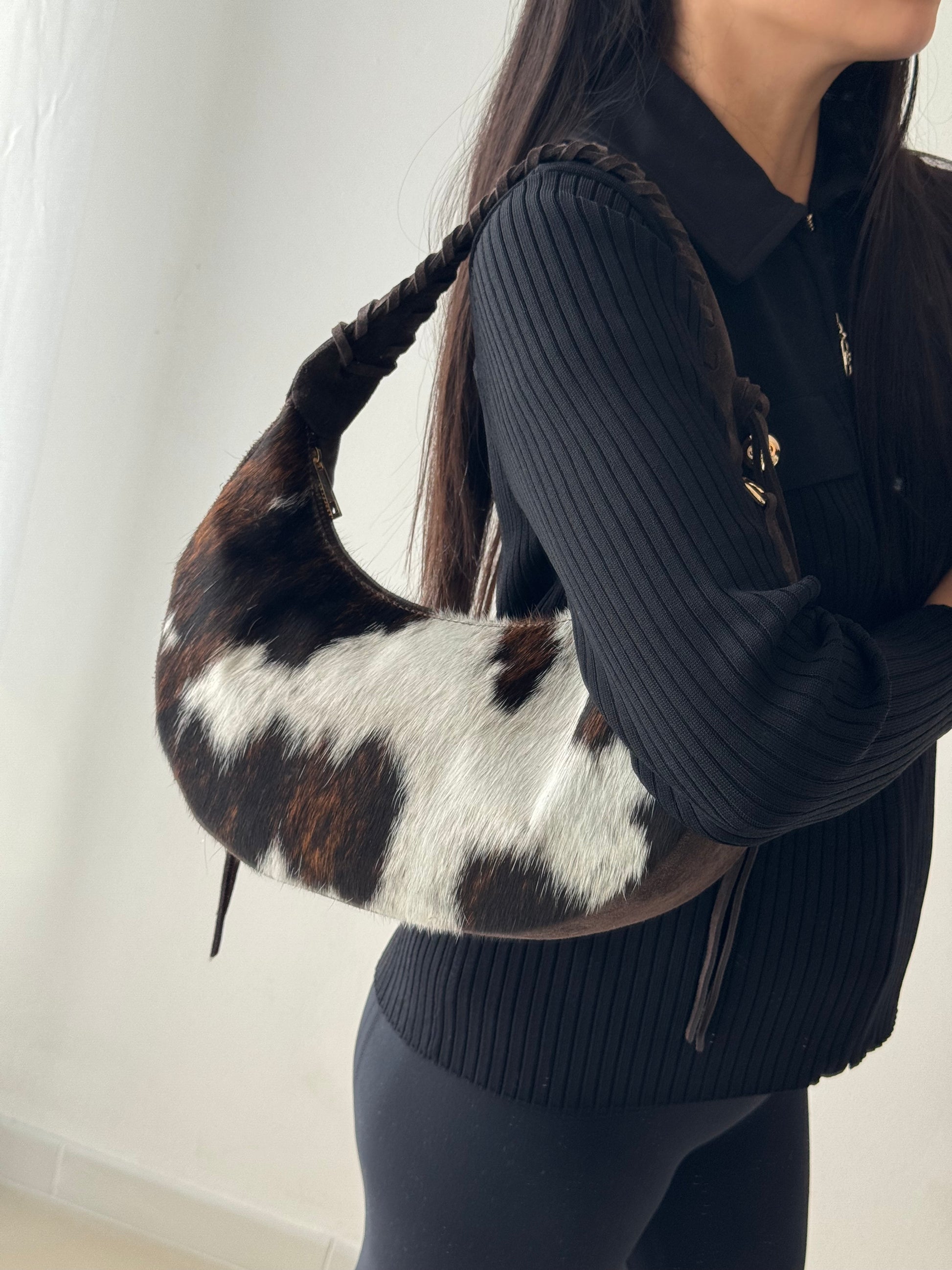 NB: Le parti in cavallino di tutte le borse sono DIFFERENTI tra di loro, essendo ogni borsa realizzata in vero pelo di mucca