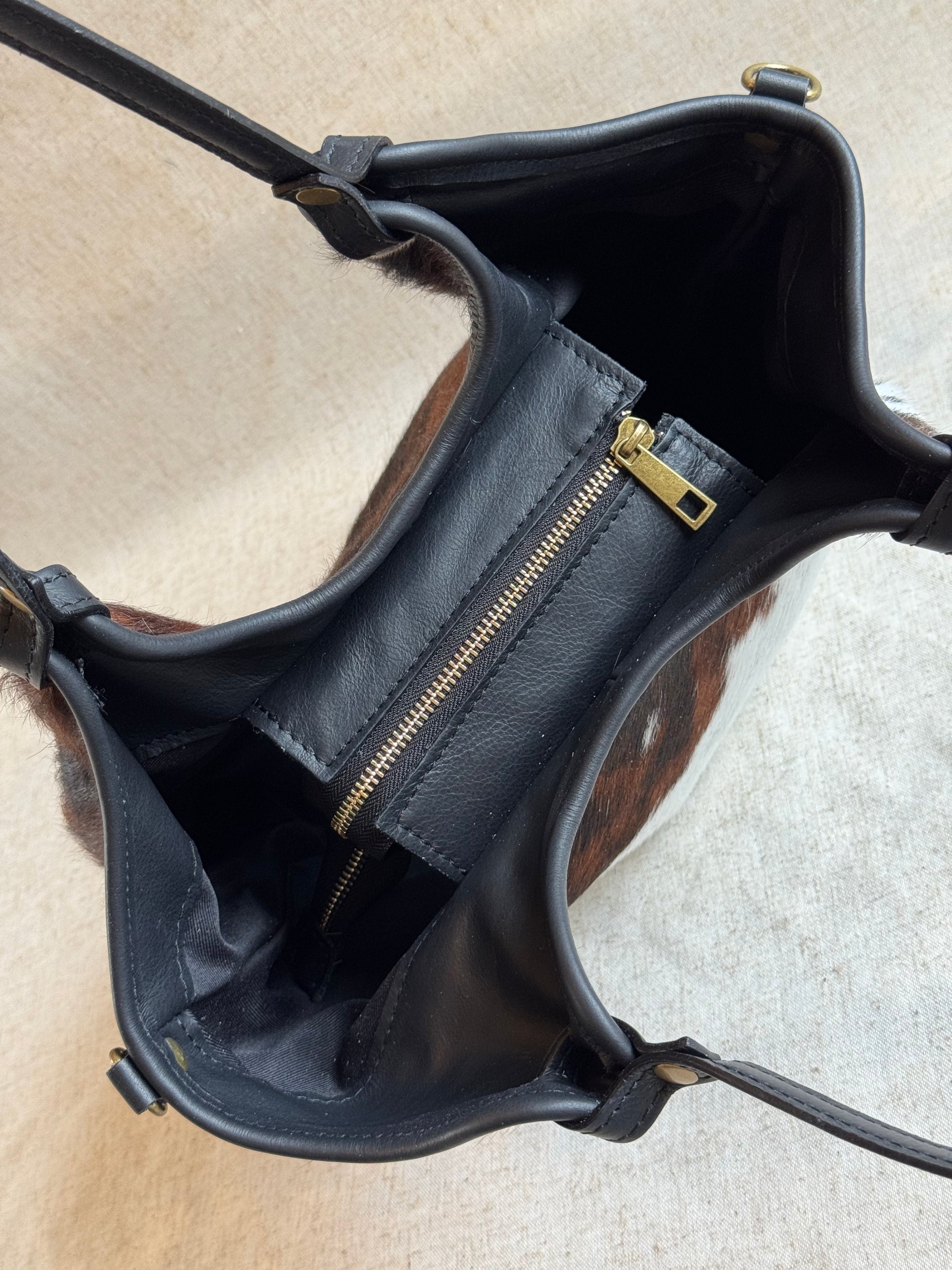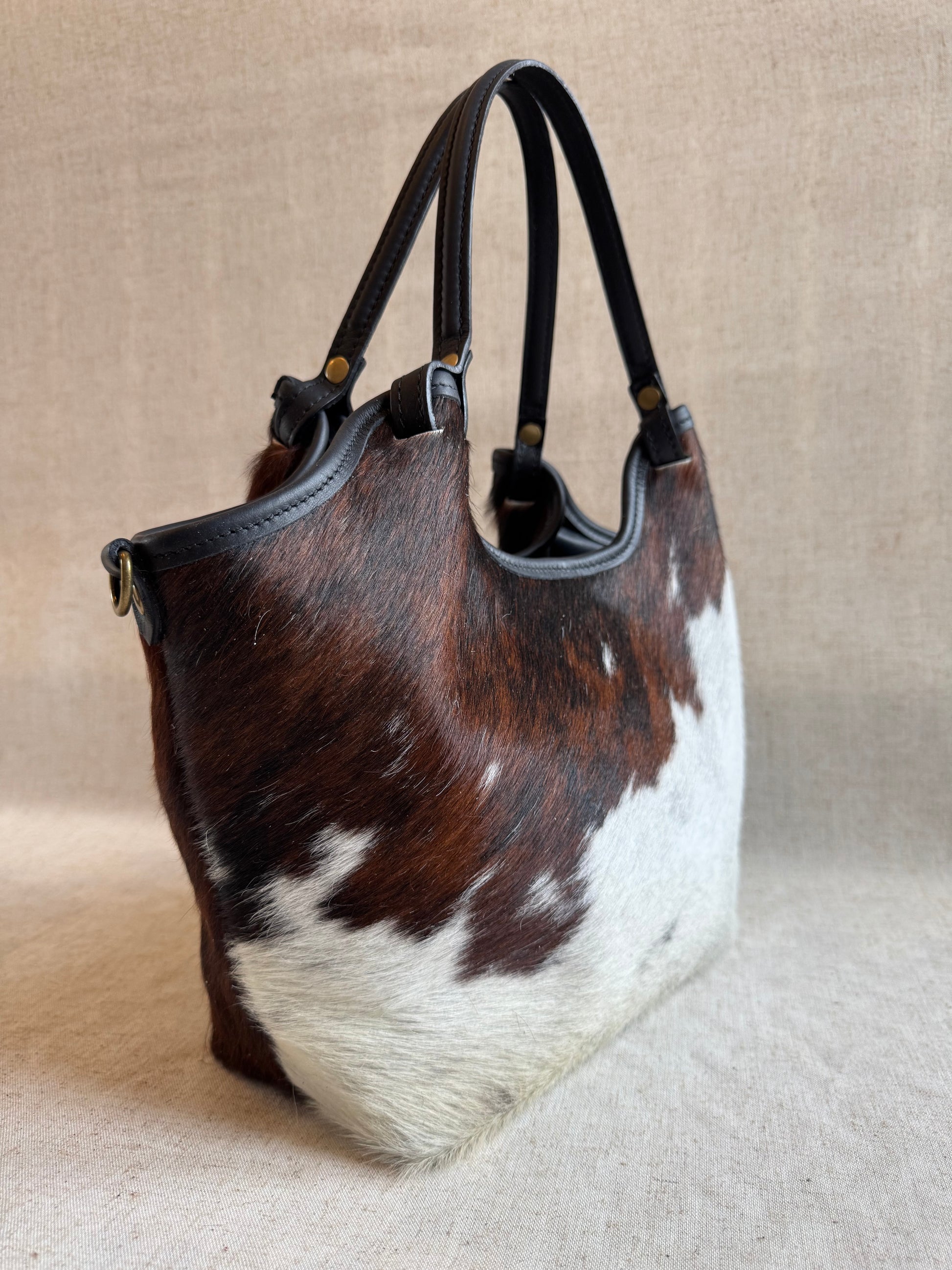 NB: Le parti in cavallino di tutte le borse sono DIFFERENTI tra di loro, essendo ogni borsa realizzata in vero pelo di mucca