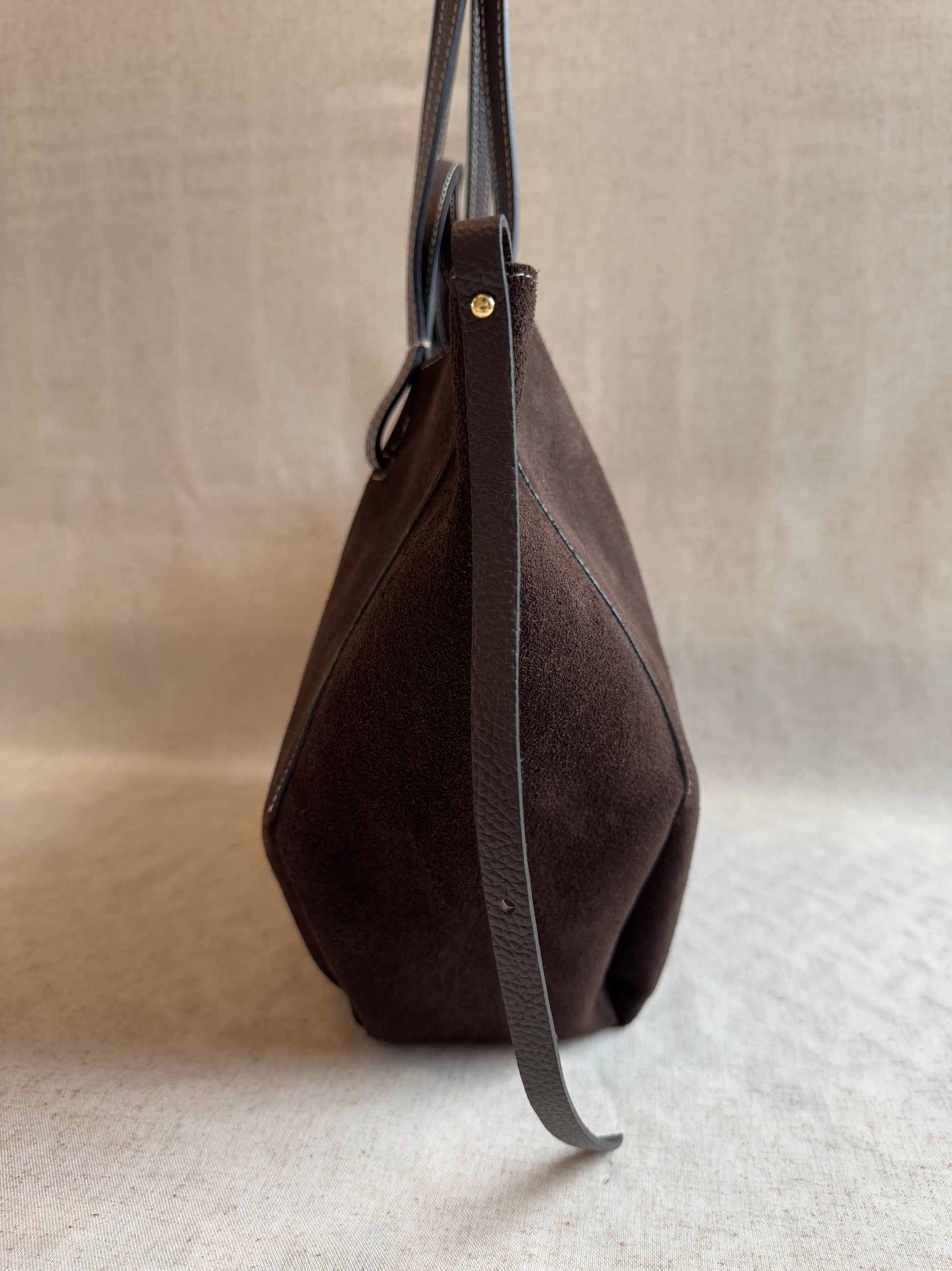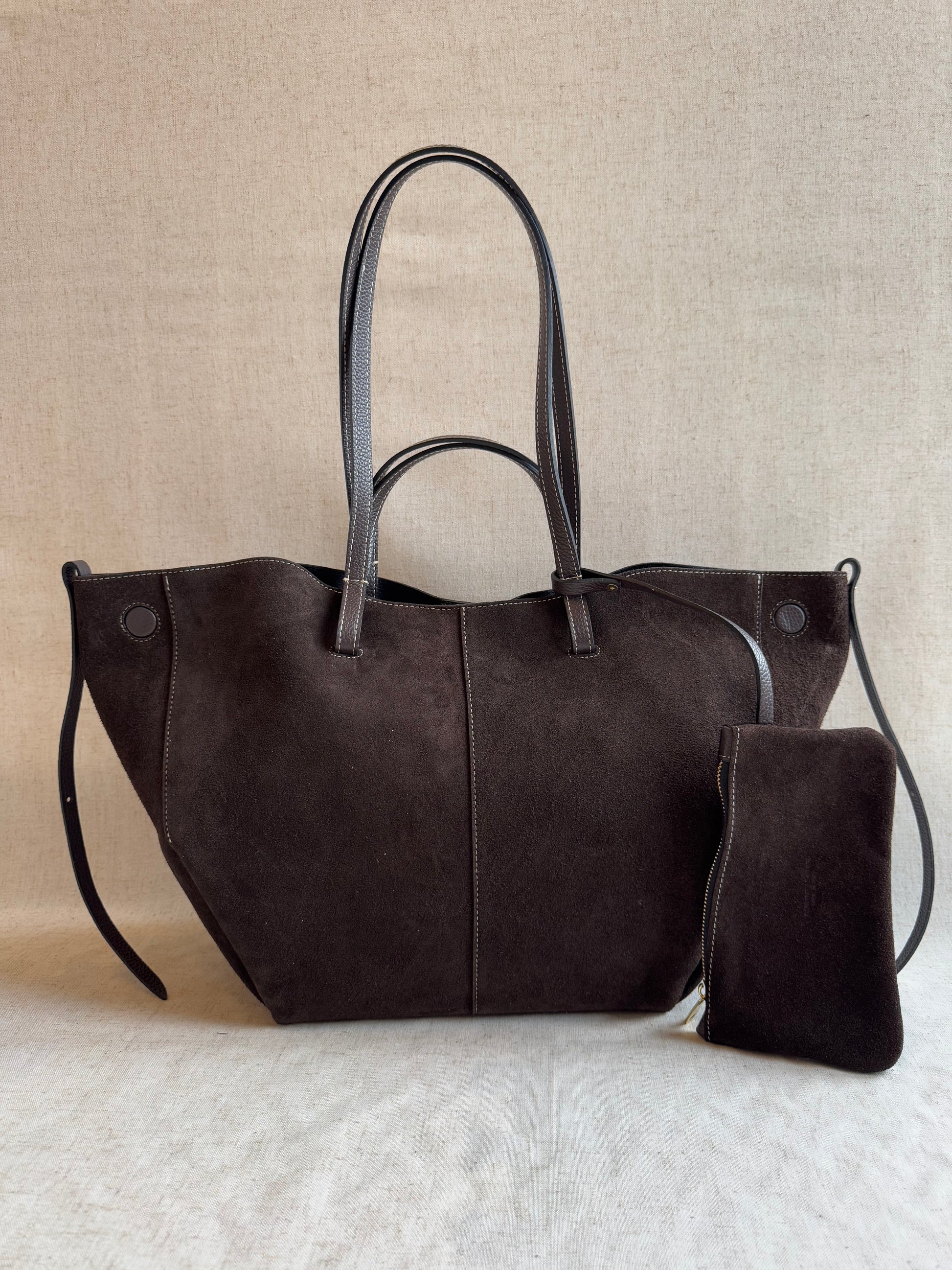 Borsa a spalla Sofia - misura grande in camoscio, con pochette