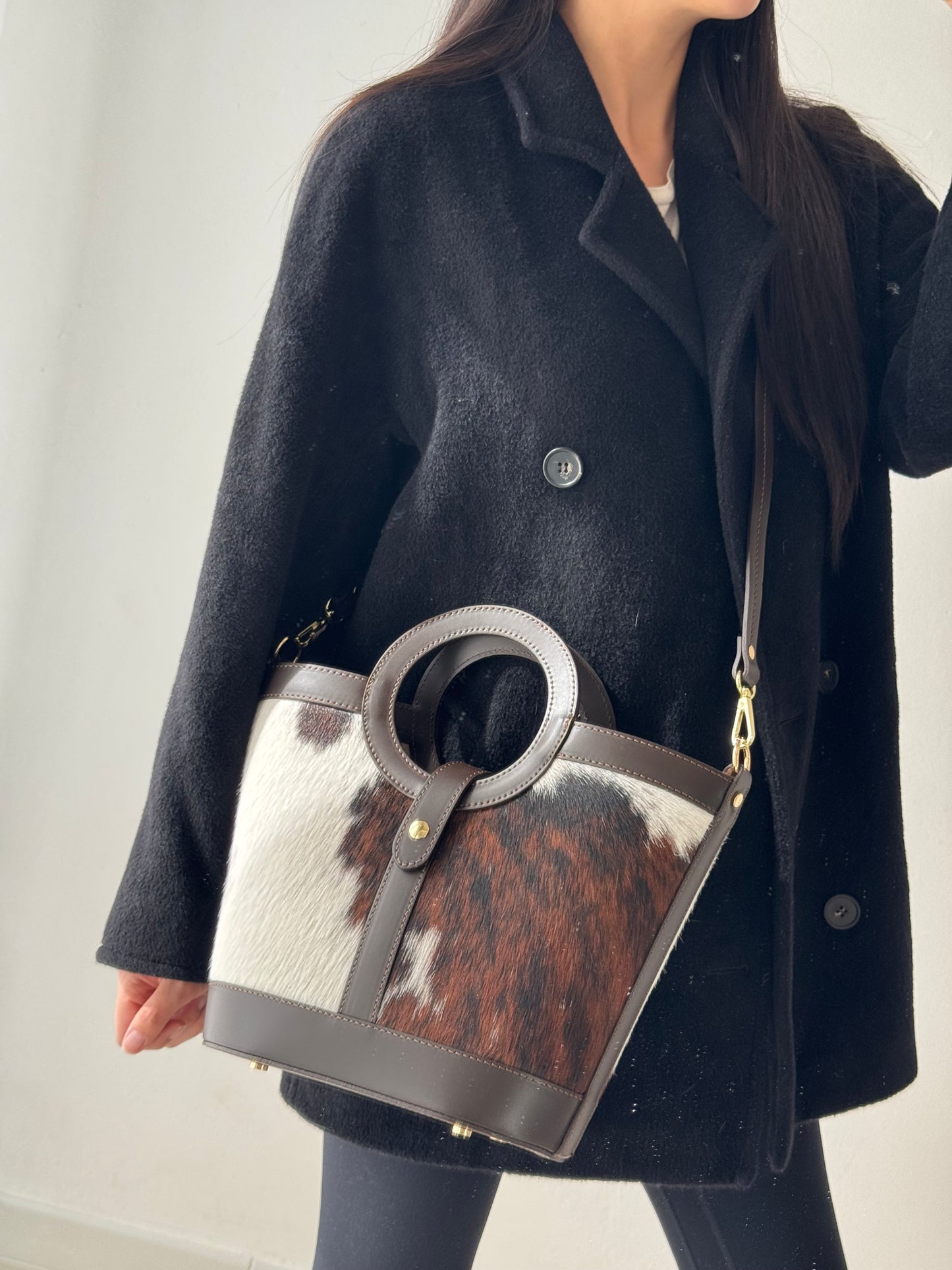 NB: Le parti in cavallino di tutte le borse sono DIFFERENTI tra di loro, essendo ogni borsa realizzata in vero pelo di mucca