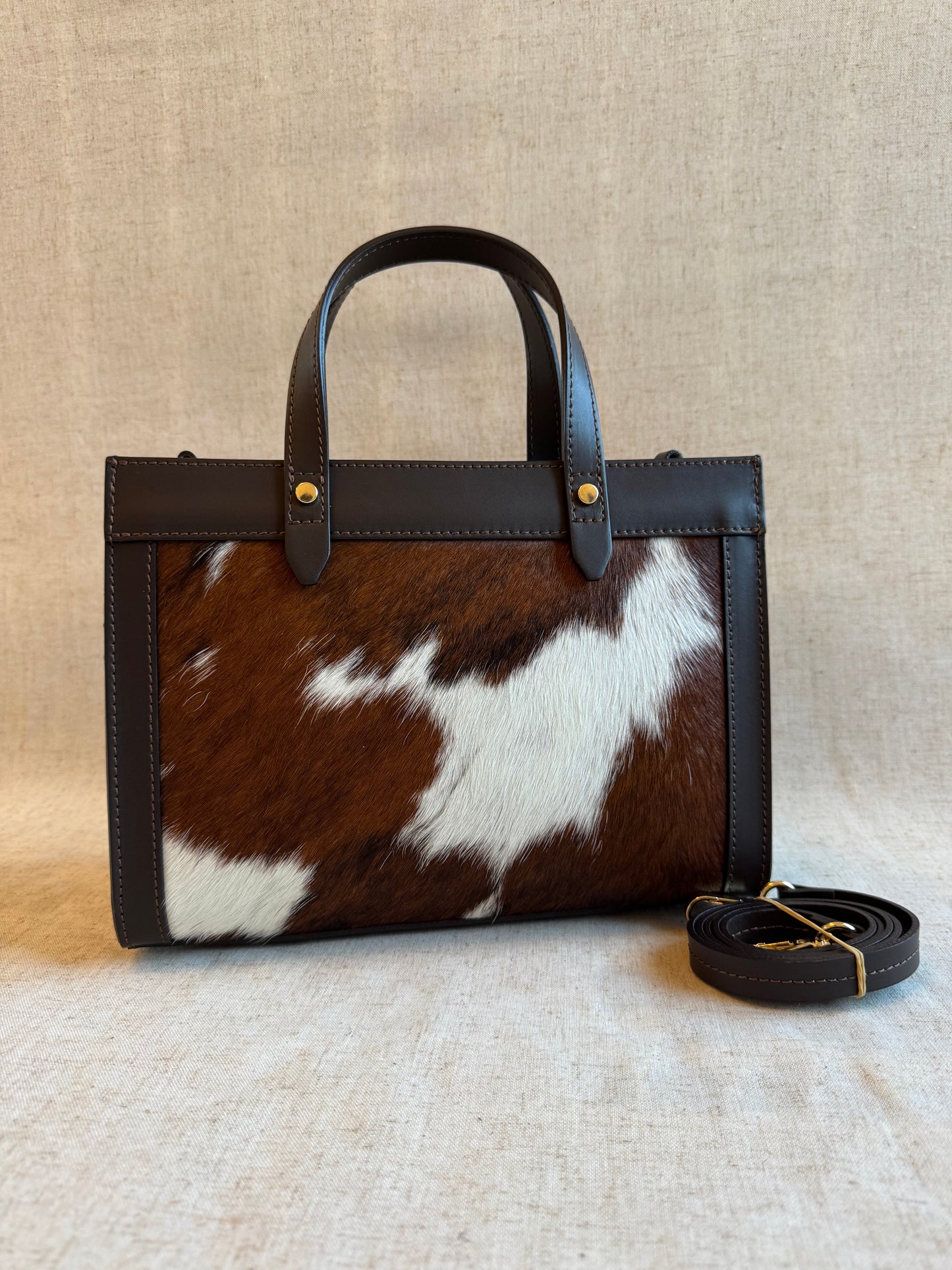 NB: Le parti in cavallino di tutte le borse sono DIFFERENTI tra di loro, essendo ogni borsa realizzata in vero pelo di mucca