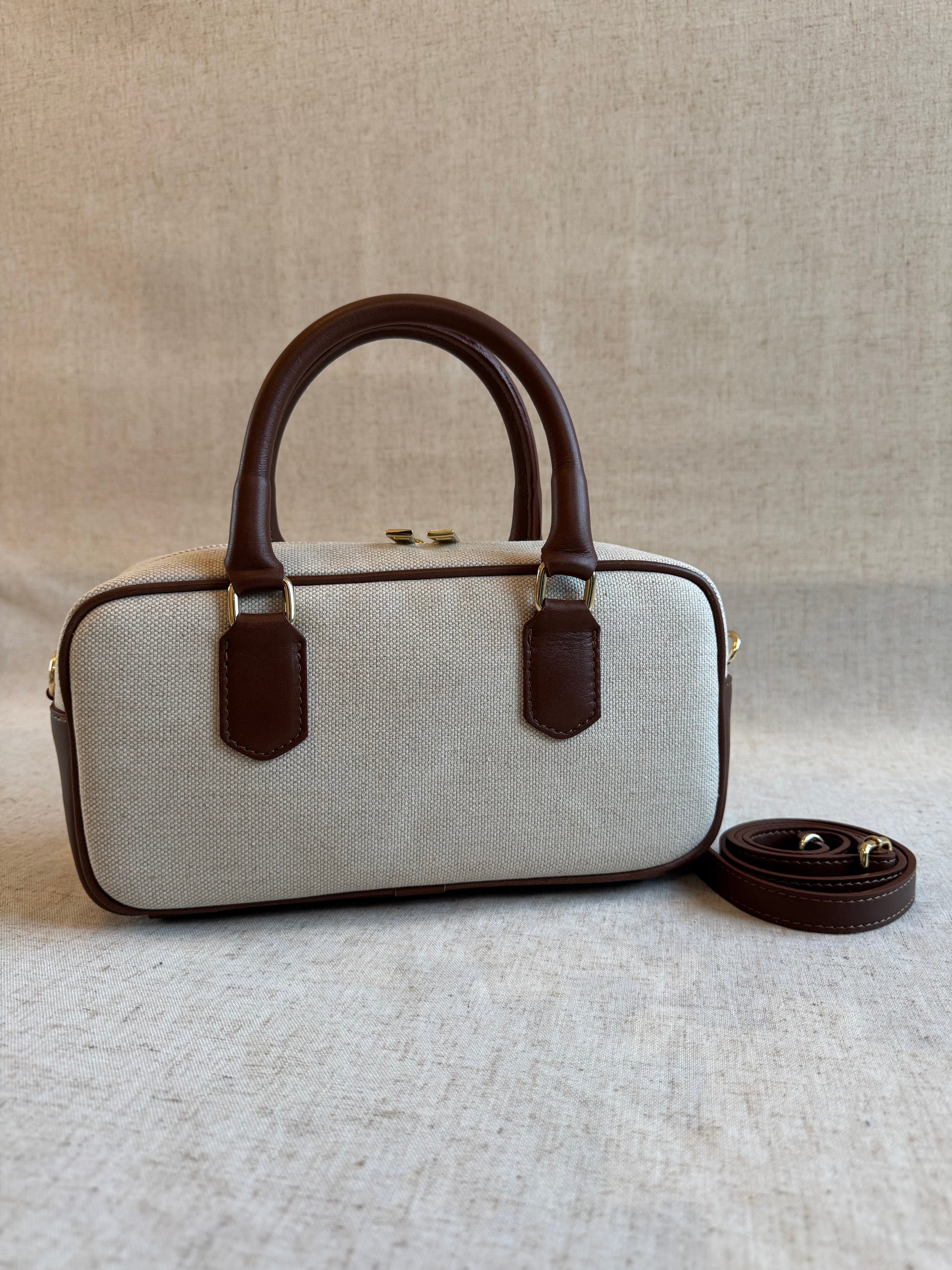 Realizzata in vera pelle e tessuto canvas, made in Italy.