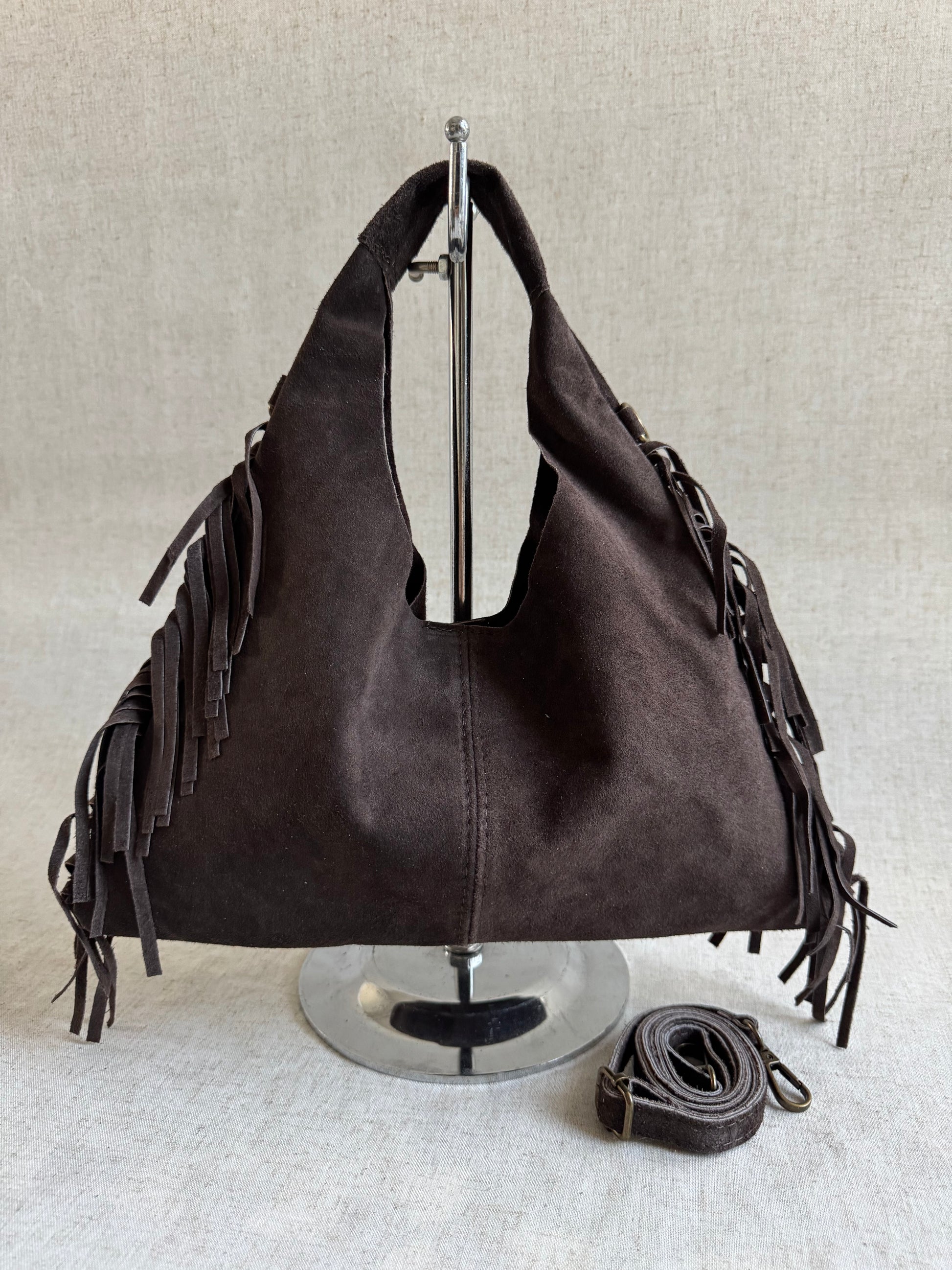Realizzata in vera pelle scamosciata, Made in Italy.