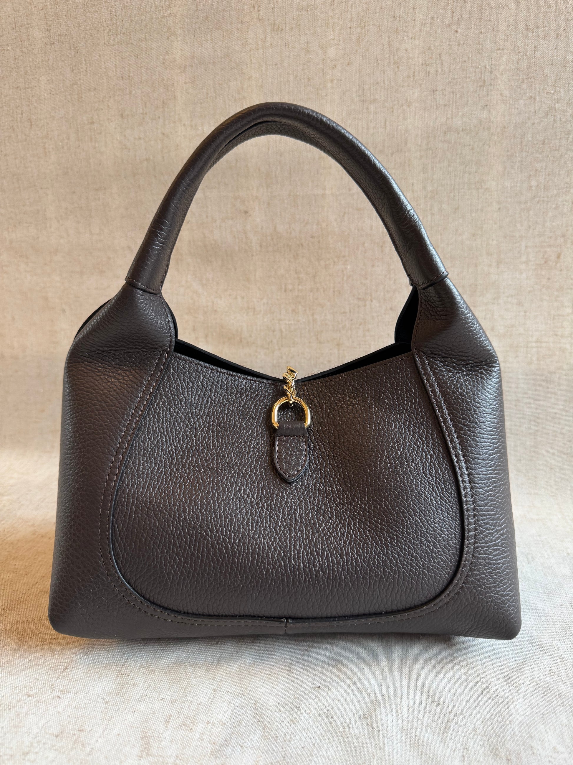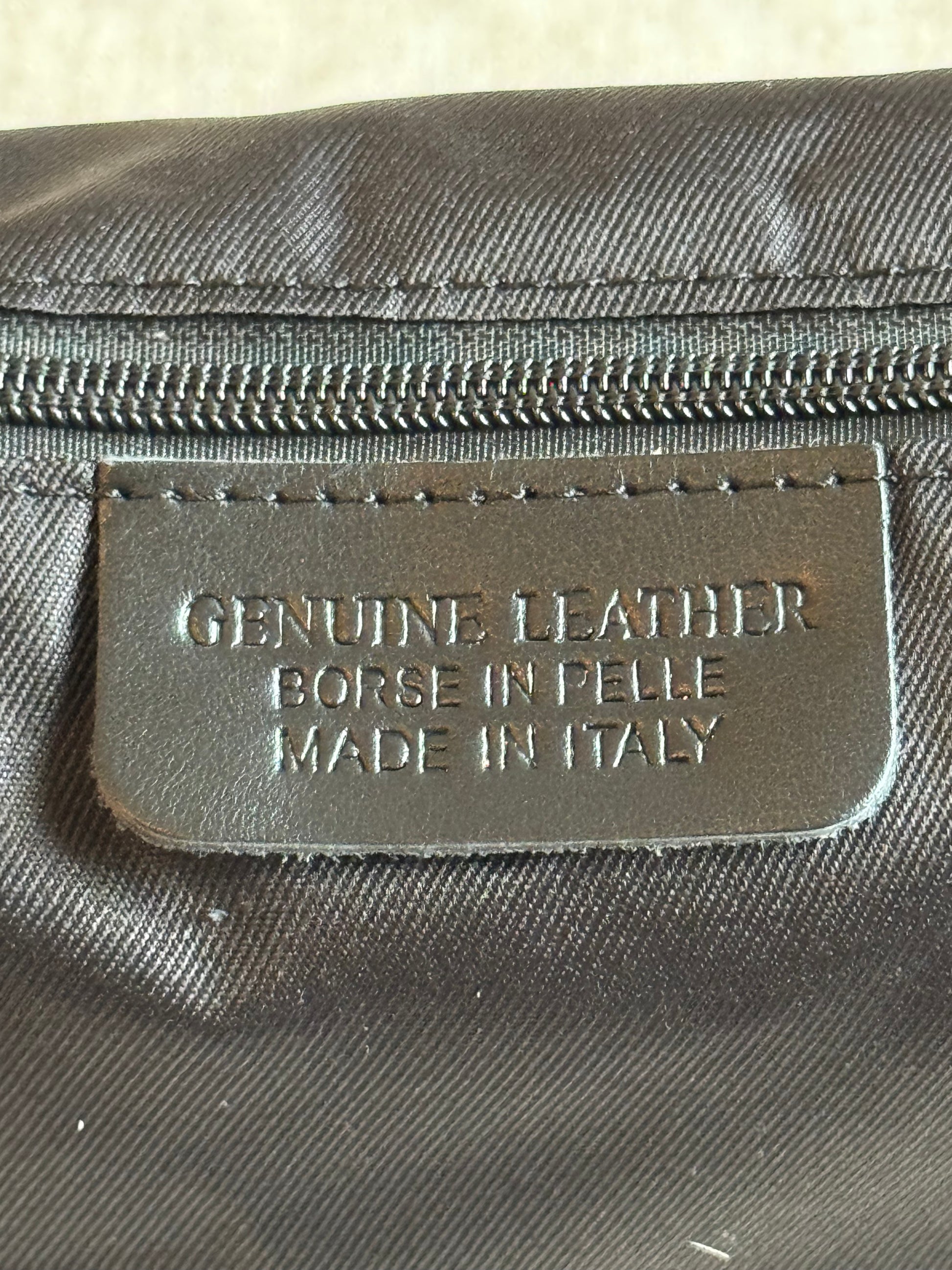Realizzata a mano in vera pelle e cavallino, Made in Italy.