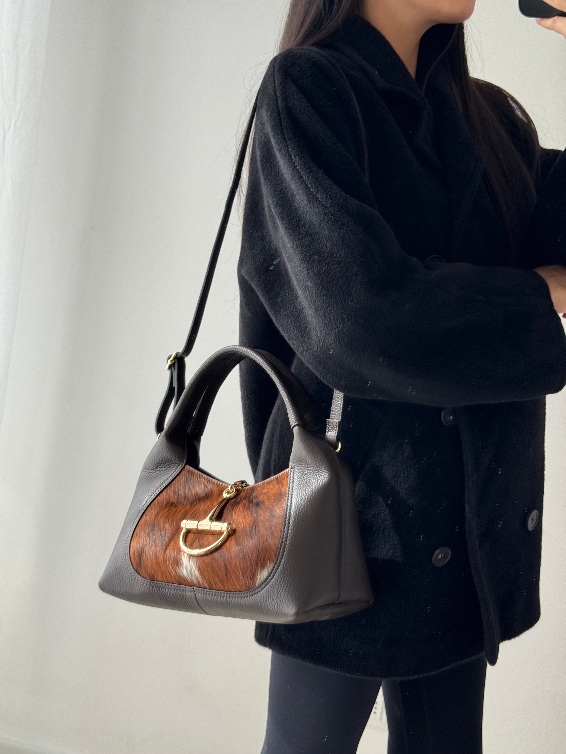 NB: Le parti in cavallino di tutte le borse sono DIFFERENTI tra di loro, essendo ogni borsa realizzata in vero pelo di mucca