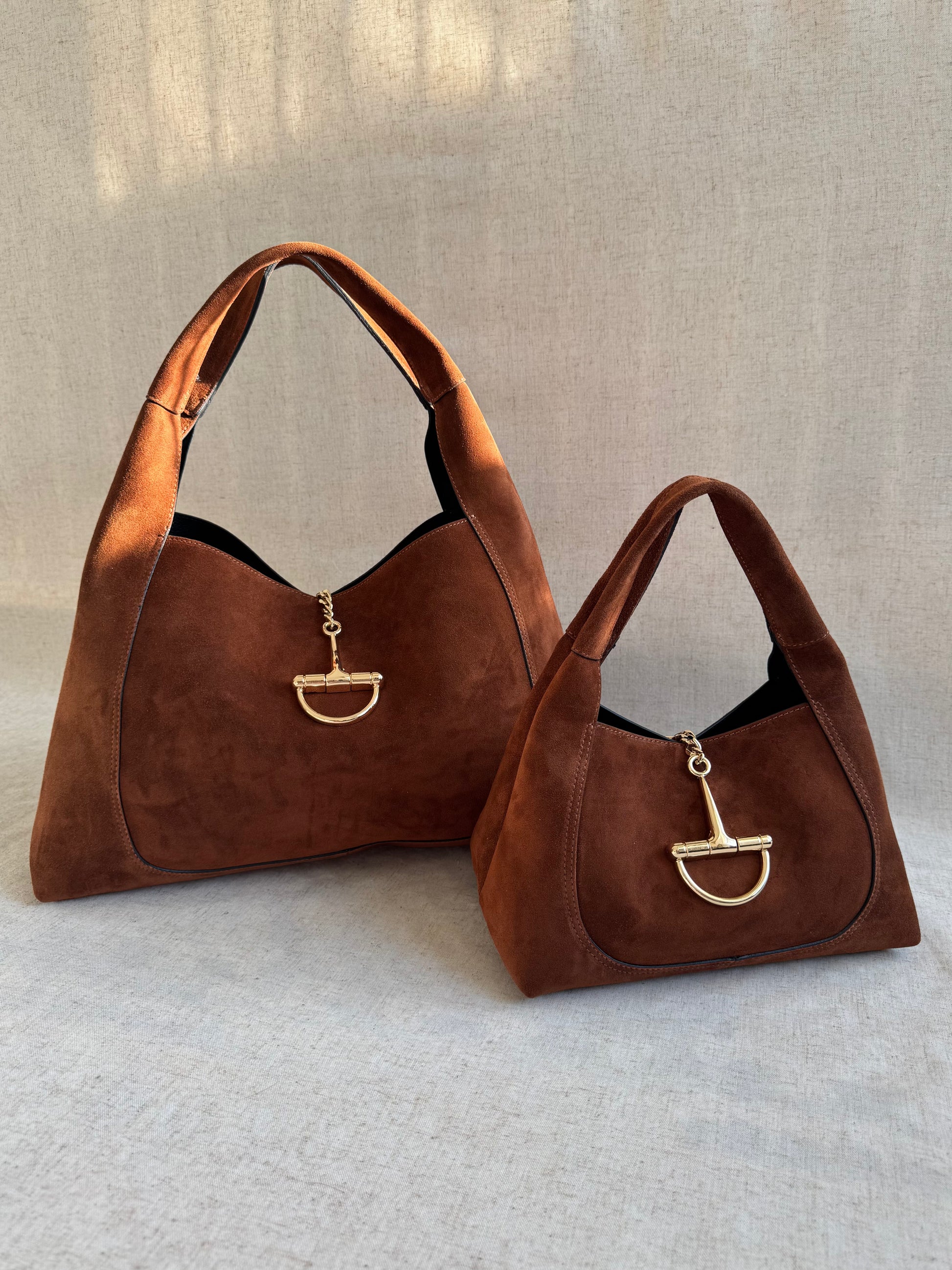 Realizzata a mano in vera pelle scamosciata, Made in Italy.