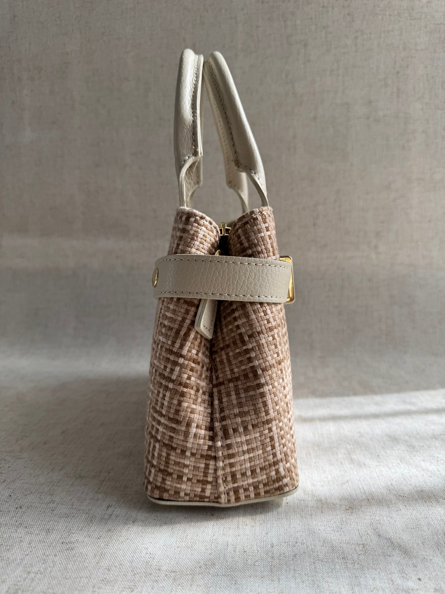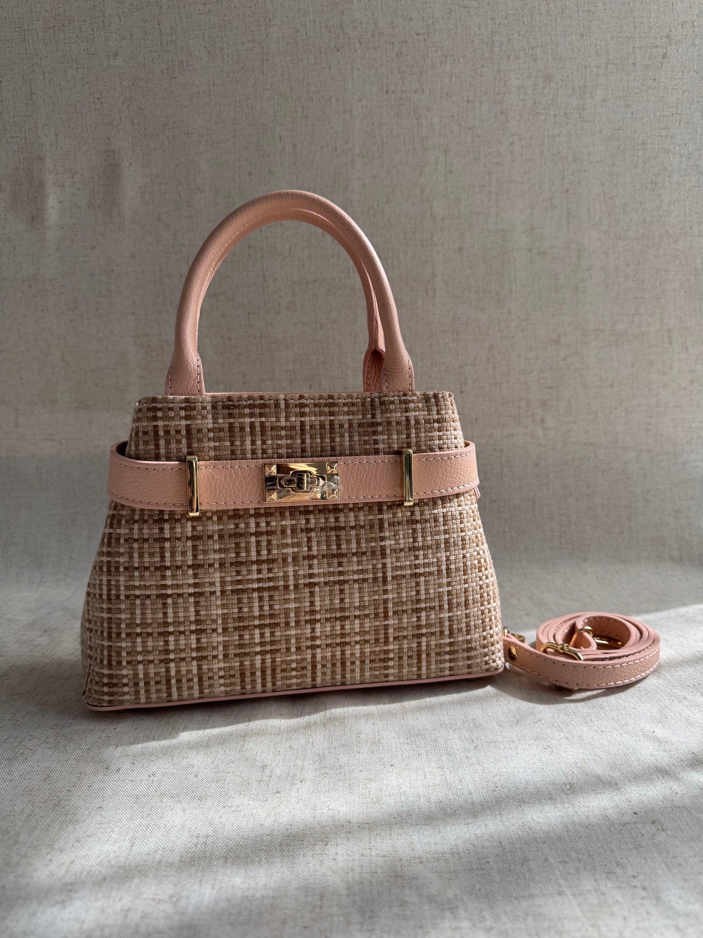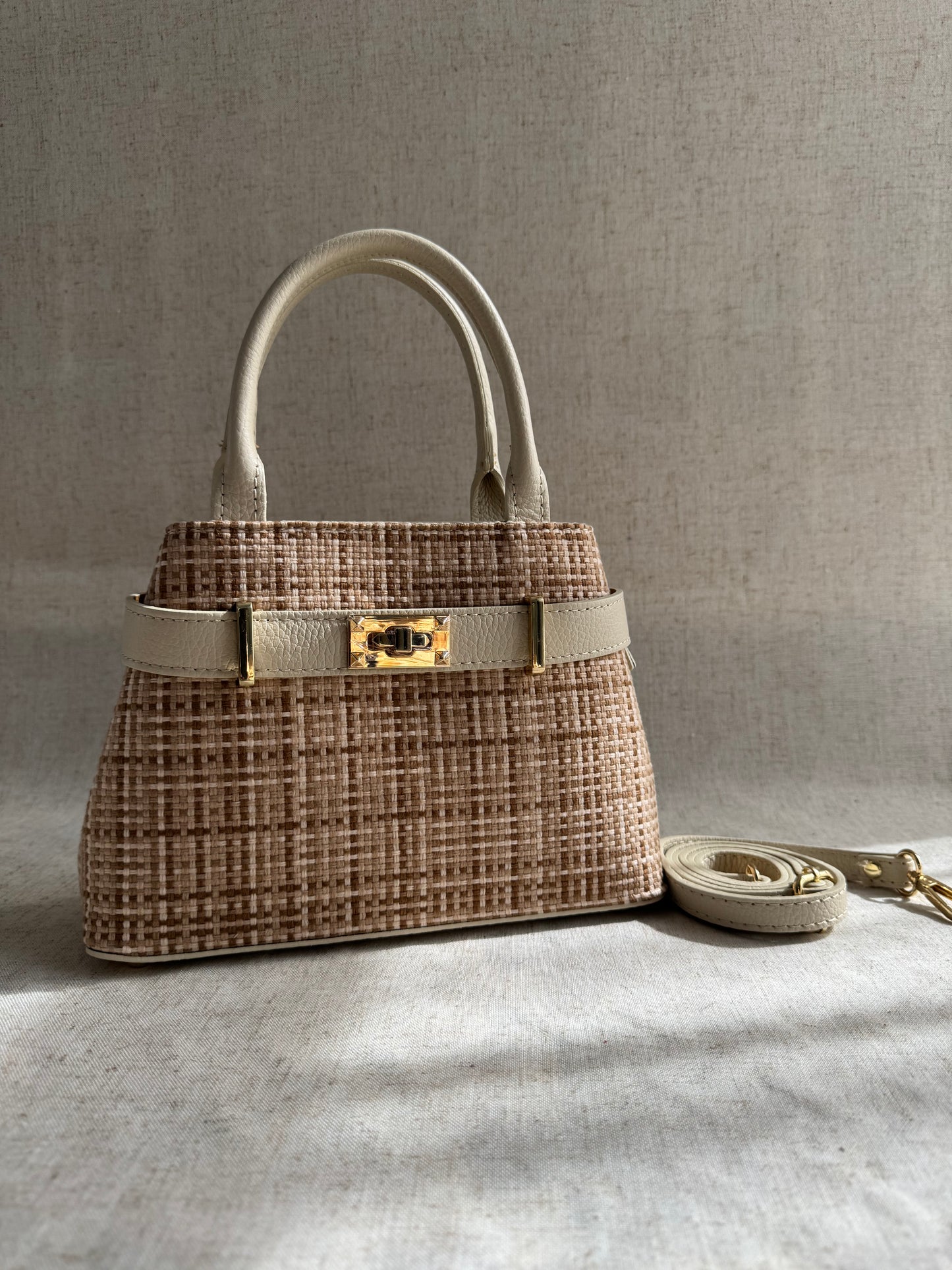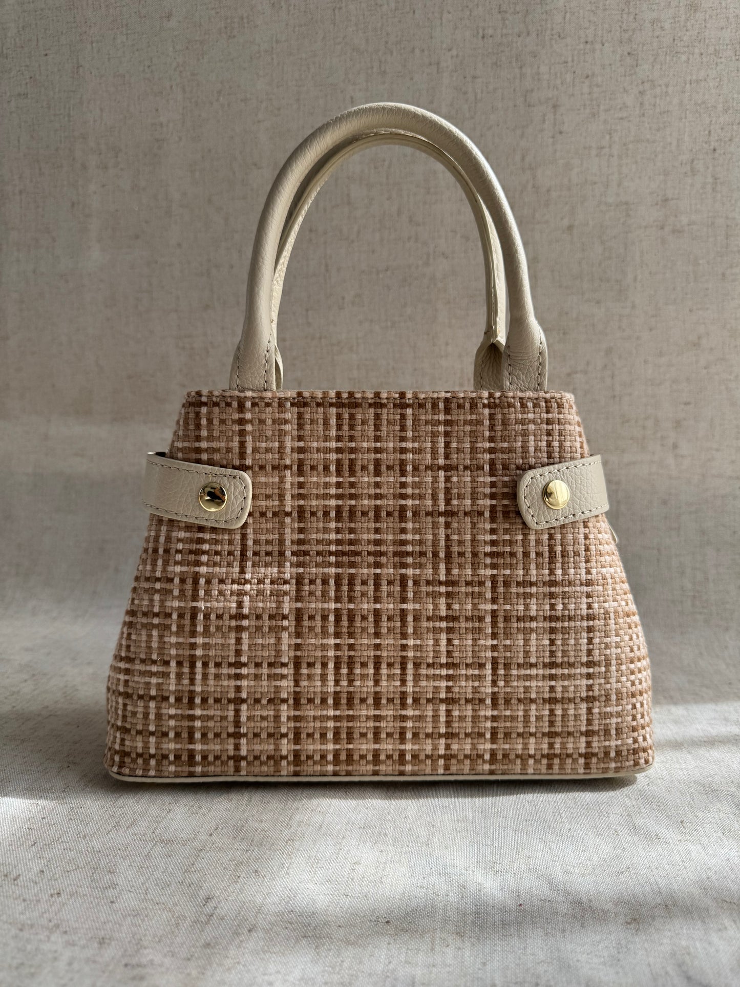 Realizzata in vera pelle e tessuto premium intrecciato, Made in Italy.