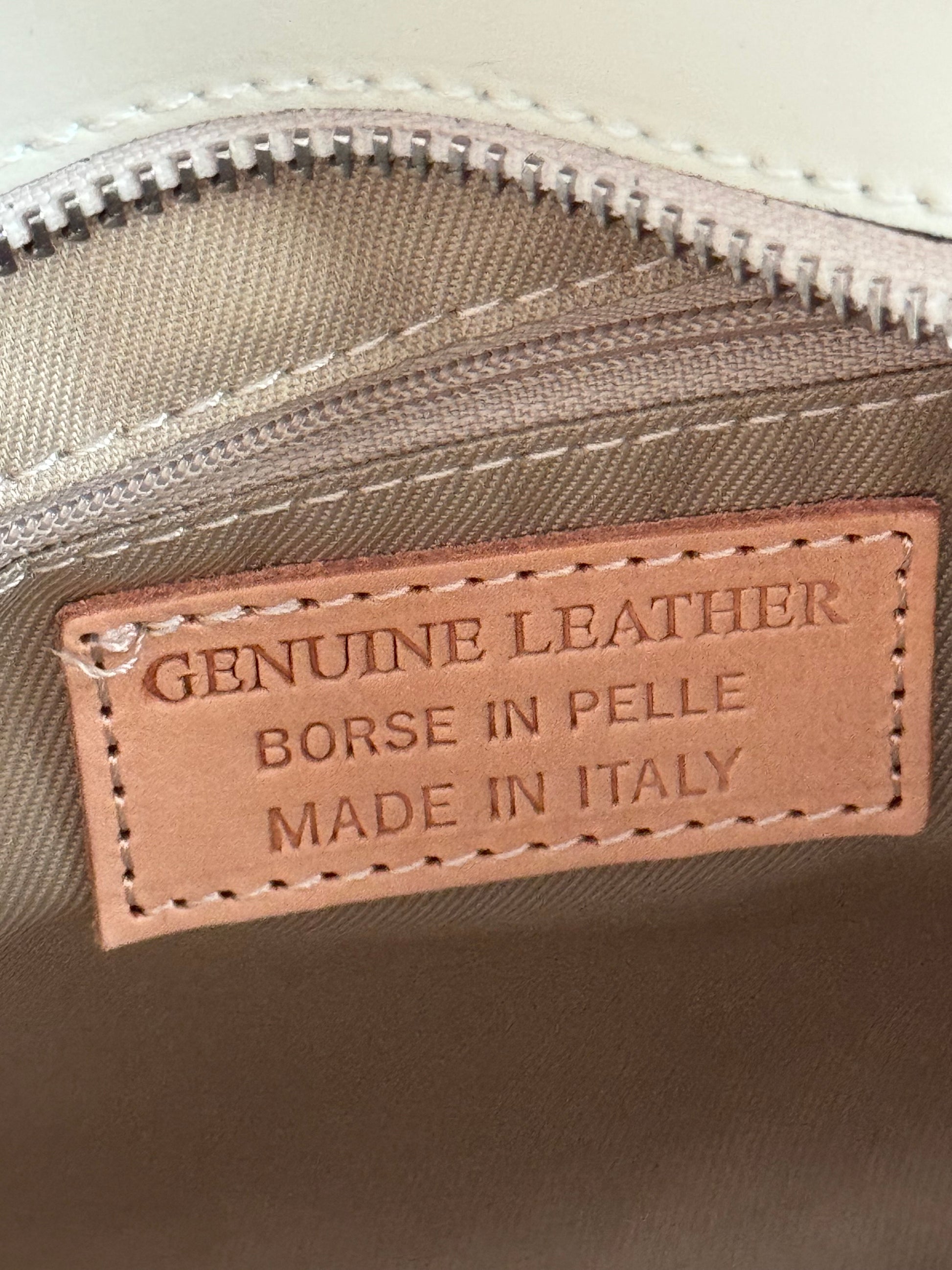 Realizzata in rafia e vera pelle, made in Italy