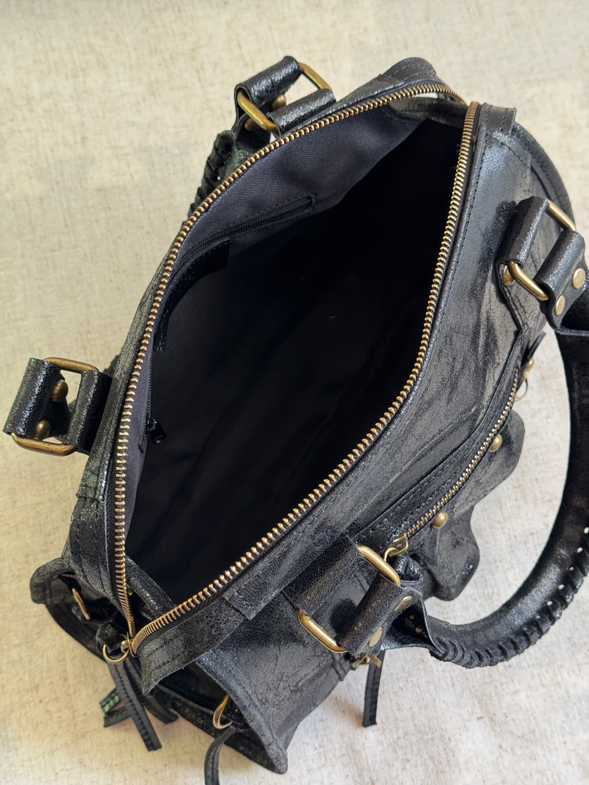 Interno foderato + tasca interna laterale, chiusura a cerniera