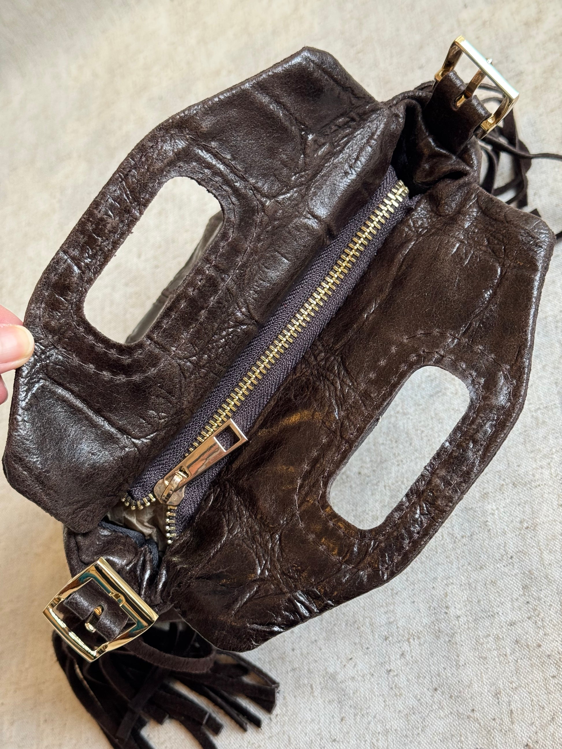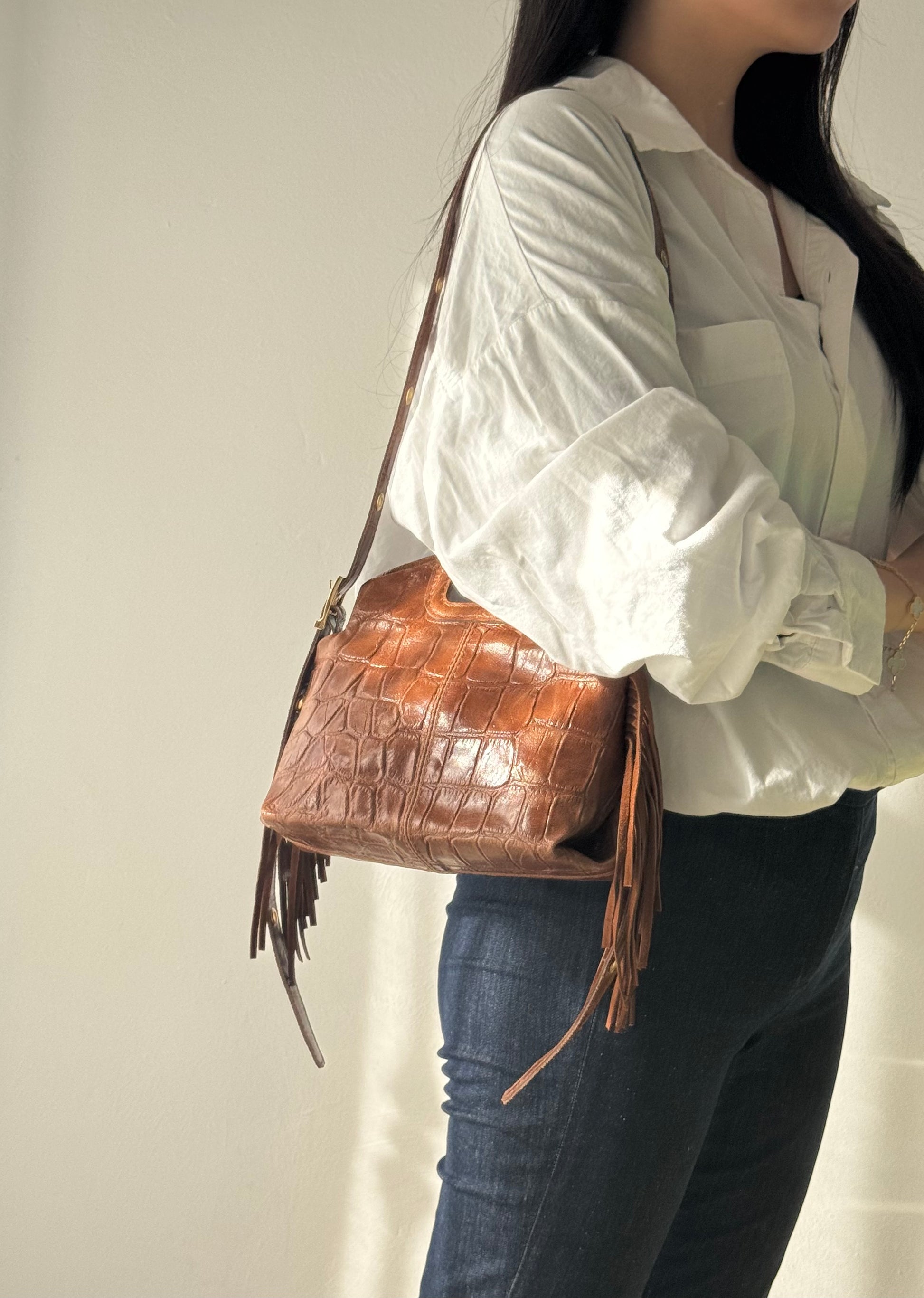 Stampa coccodrillo, dettaglio frange laterali