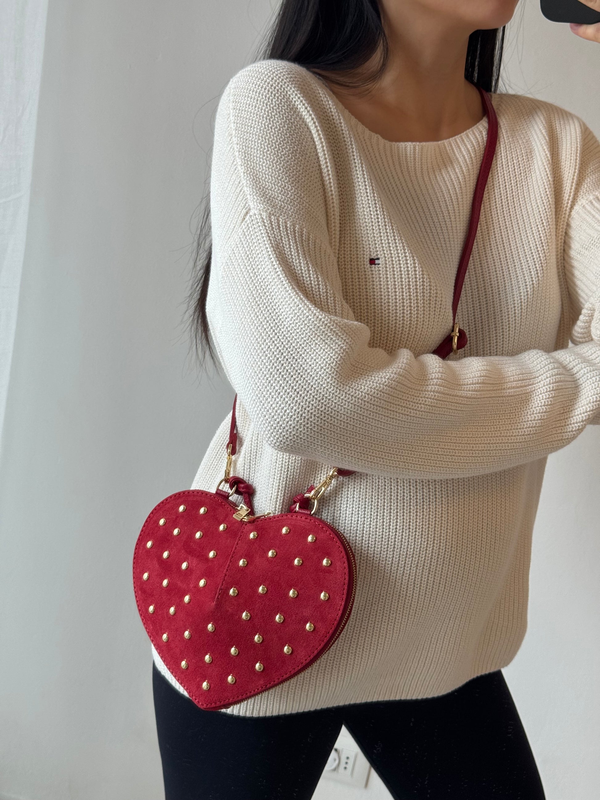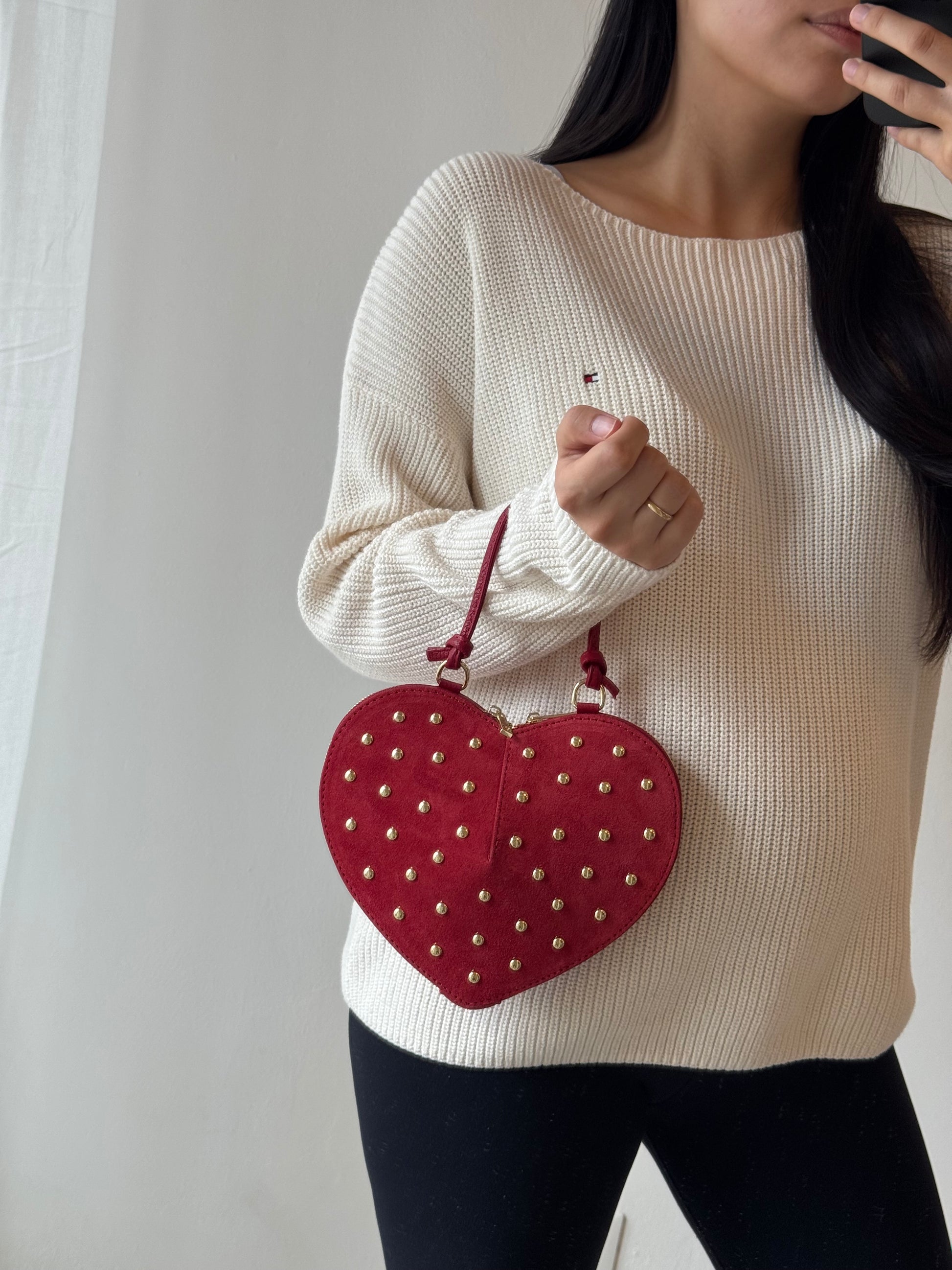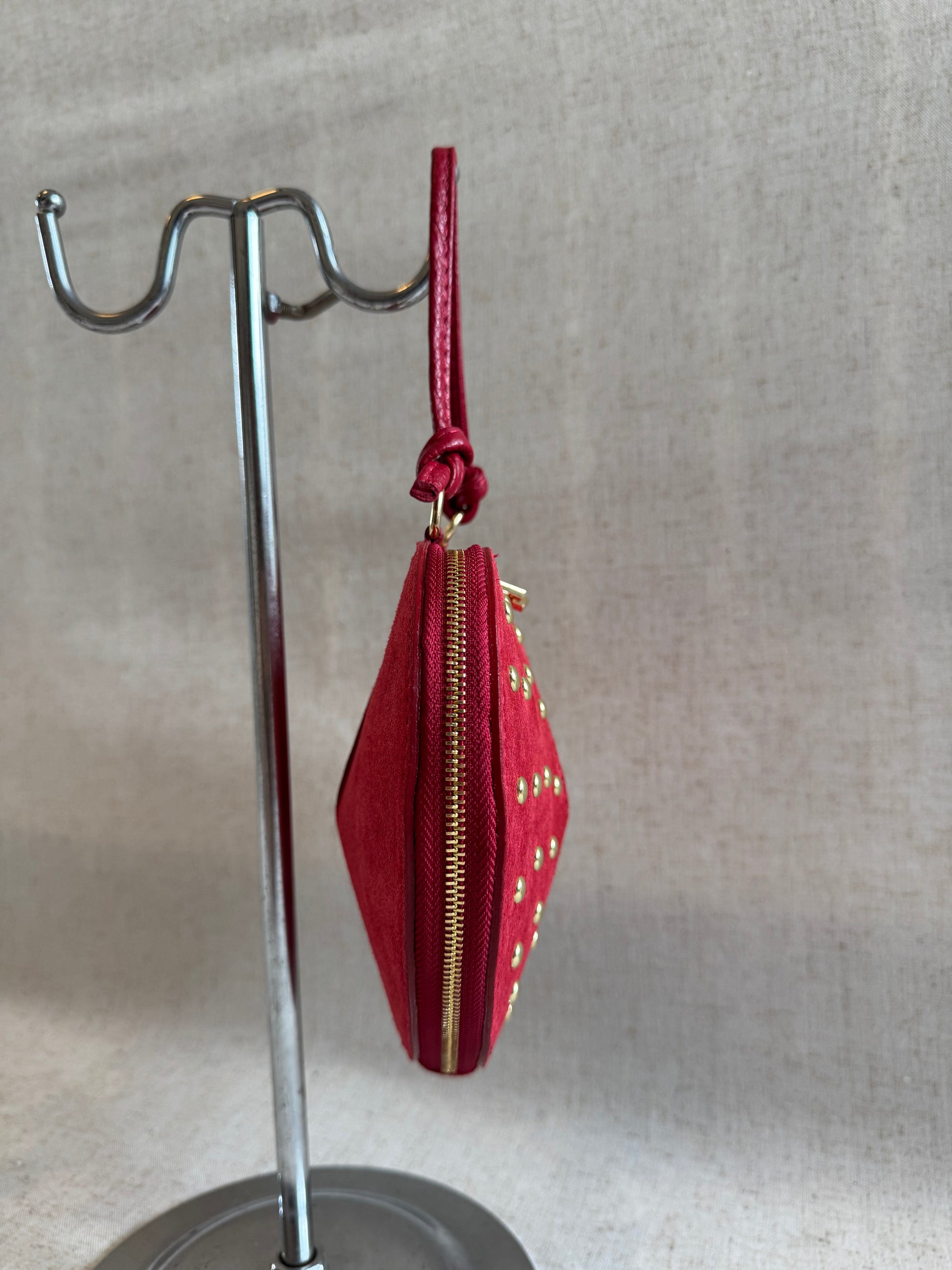 Borsa a mano con tracolla lunga regolabile compresa. Realizzata a mano in vera pelle scamosciata.