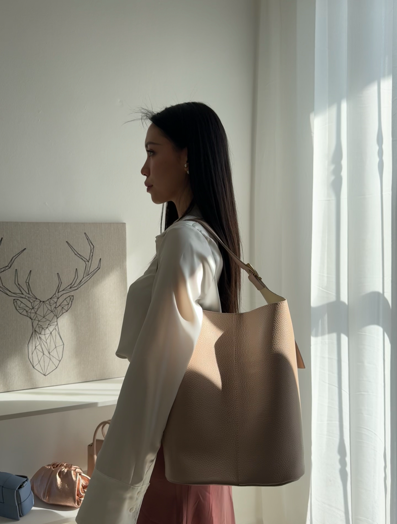 Maxi borsa secchiello a spalla, manico lunghezza regolabile