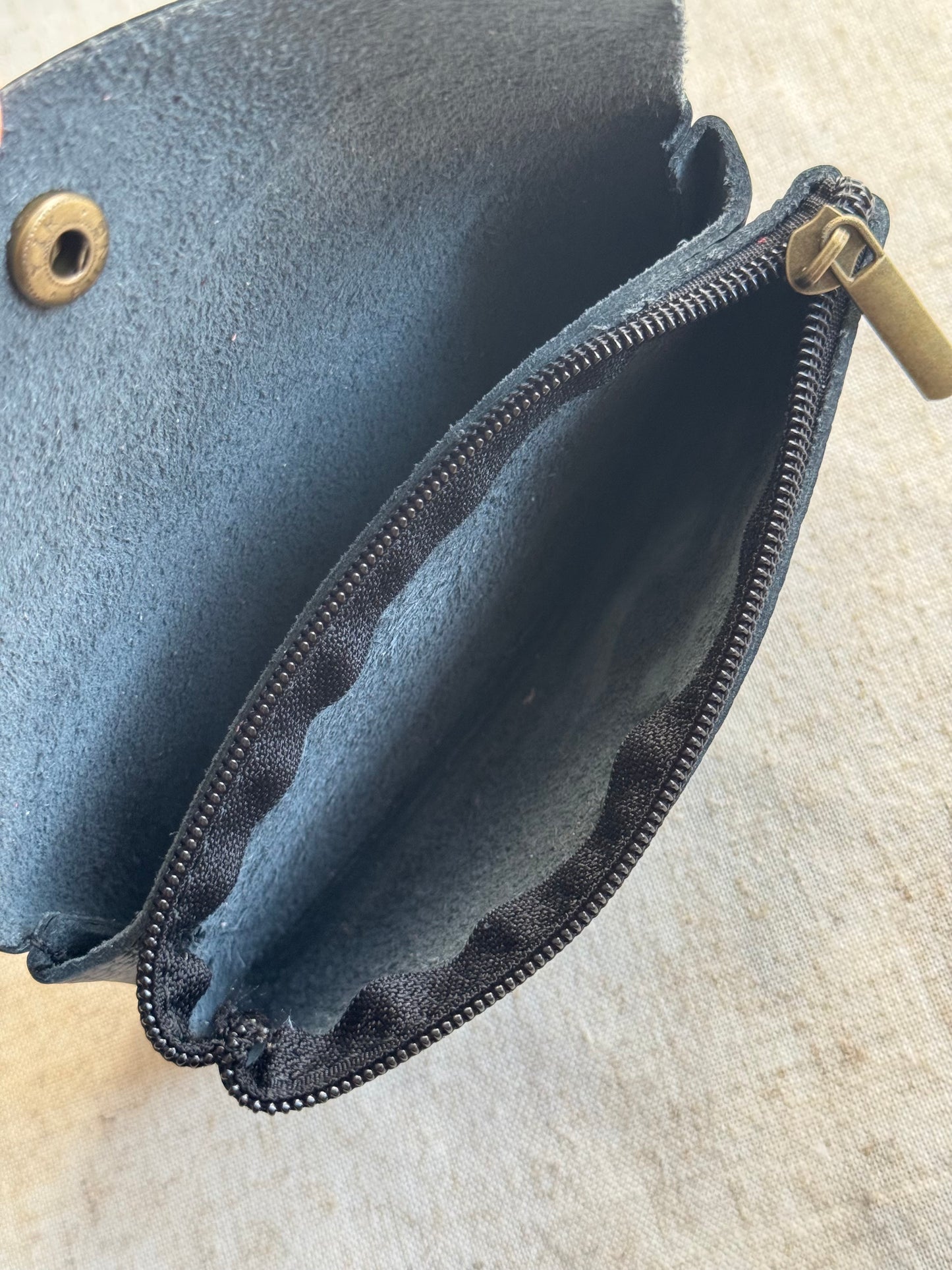 Portafoglio con cerniera e chiusura a bottone