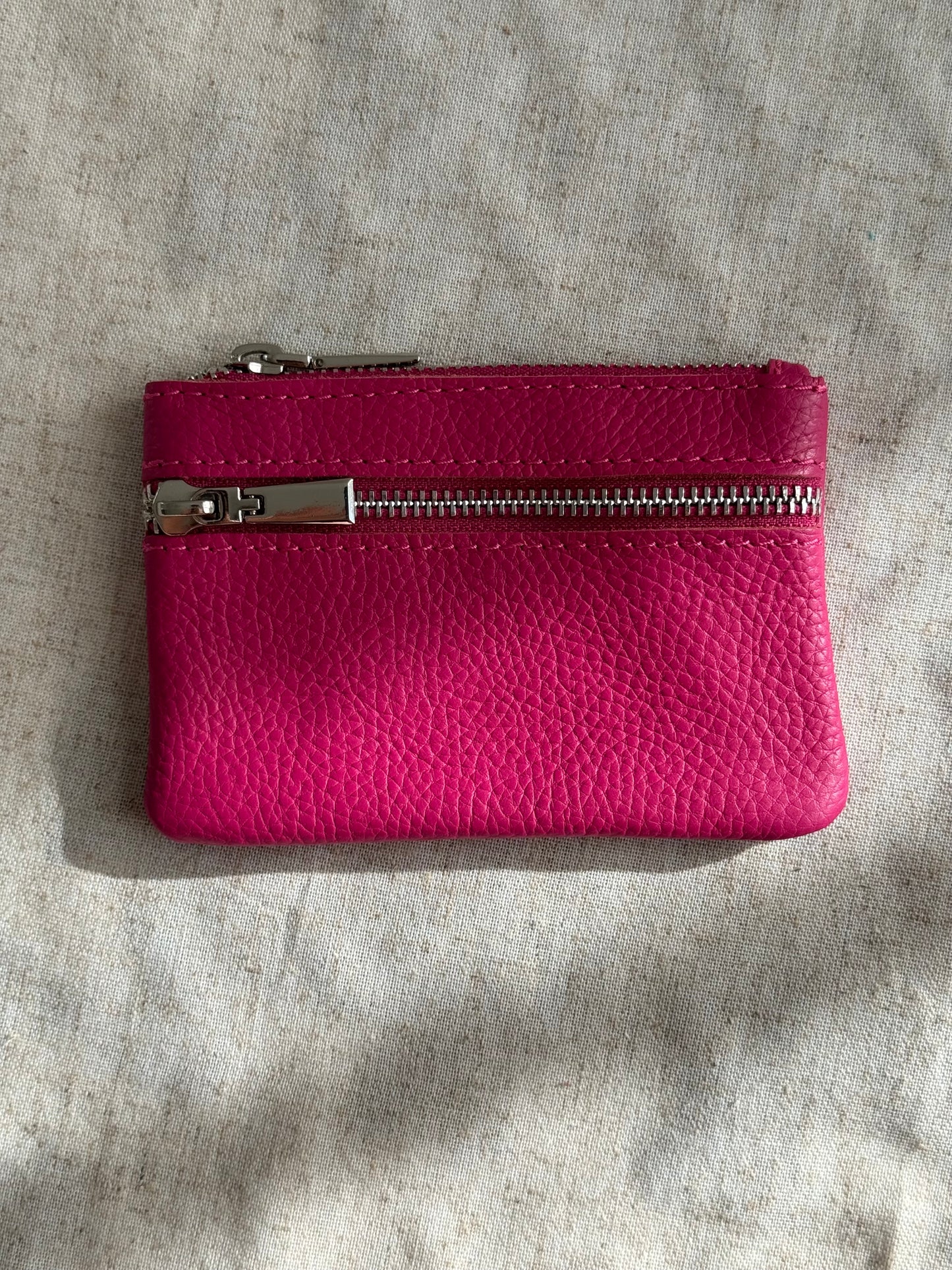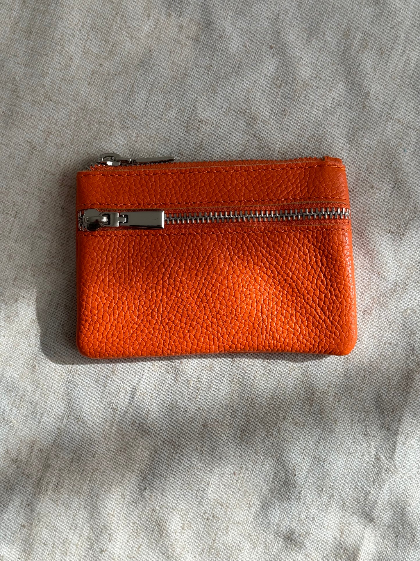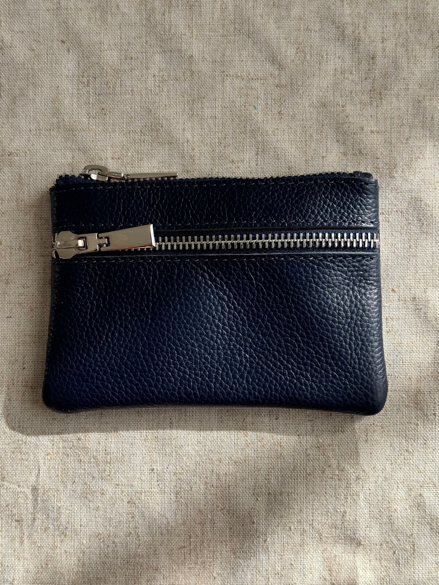 Portamonete a due scomparti con chiusura a cerniera realizzata in vera pelle, made in Italy