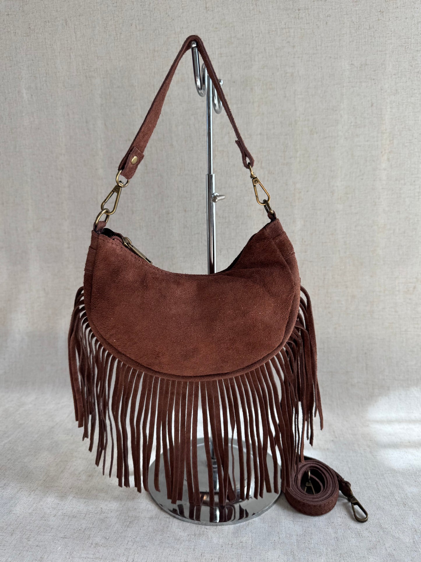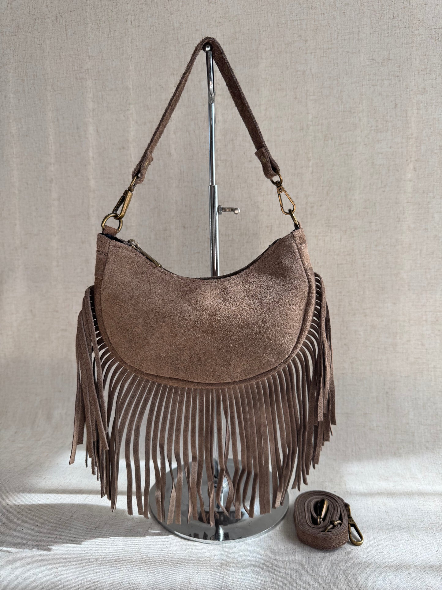 Borsa a spalla con tracolla lunga regolabile compresa.