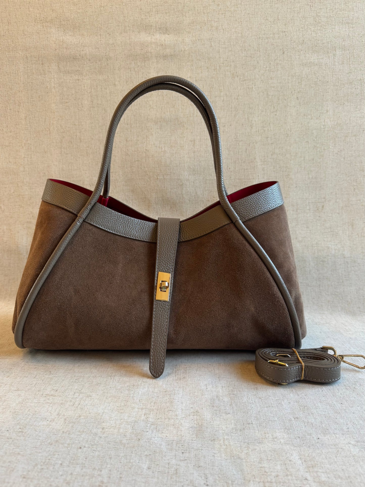 Maxi borsa Carla - camoscio, con tracolla lunga